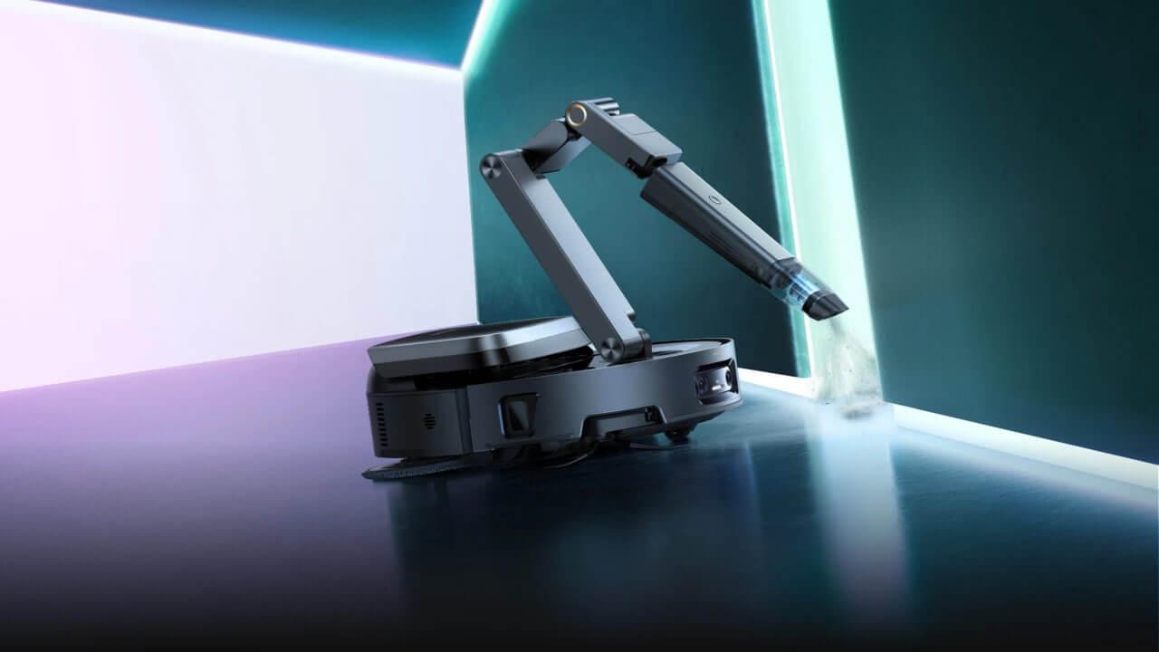 Вторая разработка — Dreame Cyber10 Ultra. Ответ основному конкуренту Roborock Saros Z70. Это робот-пылесос с механической рукой, которая используется роботом не только для сбора вещей с пола, но и локальной уборки с помощью различных насадок, идущих в комплекте и хранящихся в специальной кейсе, с которым робот взаимодействует автоматически.