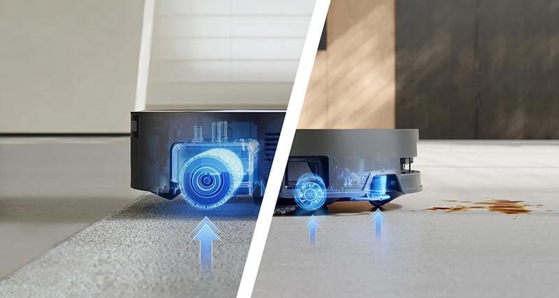 Силу всасывания увеличили до 19500 Па, и это внушающий показатель! Также улучшили и проходимость робота, теперь он способен преодолевать порожки высотой до 24 мм.