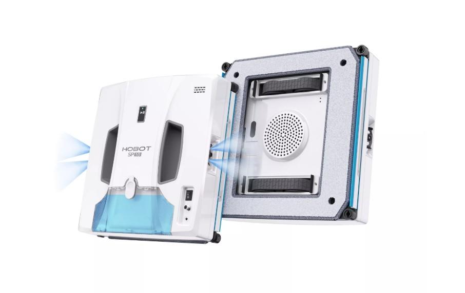 Кроме уникальных скребков HOBOT-SP10 может похвастаться функцией двустороннего распыления чистящей жидкости из двойных насос-форсунок. Тут замечу, что инженеры HOBOT ушли от привычного для компании ультразвукового распыления жидкости к капельному. Теперь чистящую жидкость не будет сдувать ветром! А ещё бак для воды стал больше по объему и теперь вмещает до 120 мл чистящей жидкости!