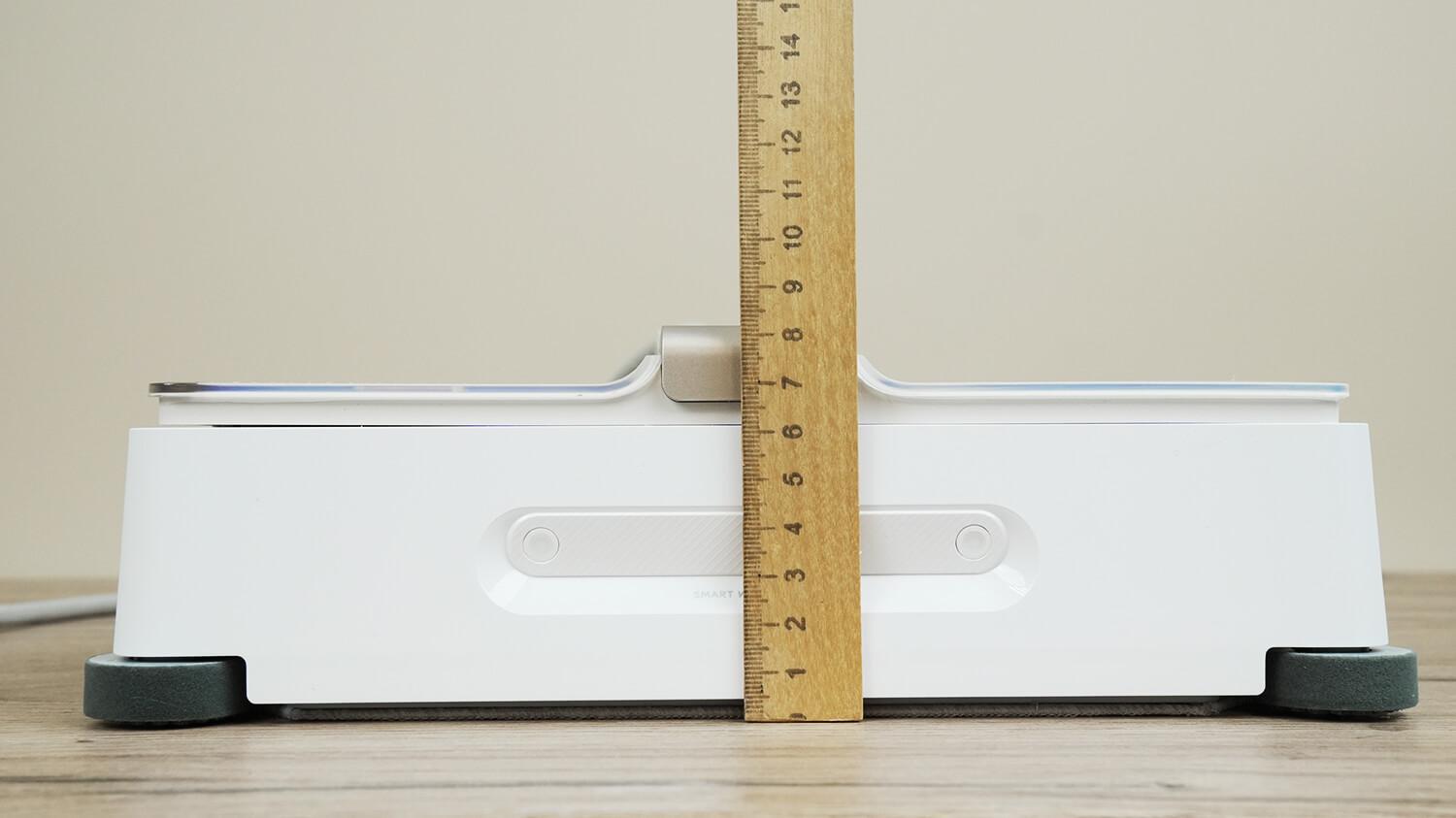 Сам робот квадратной формы. Заявлена высота корпуса 80,5 мм, хотя я фактически намерял около 82 мм.