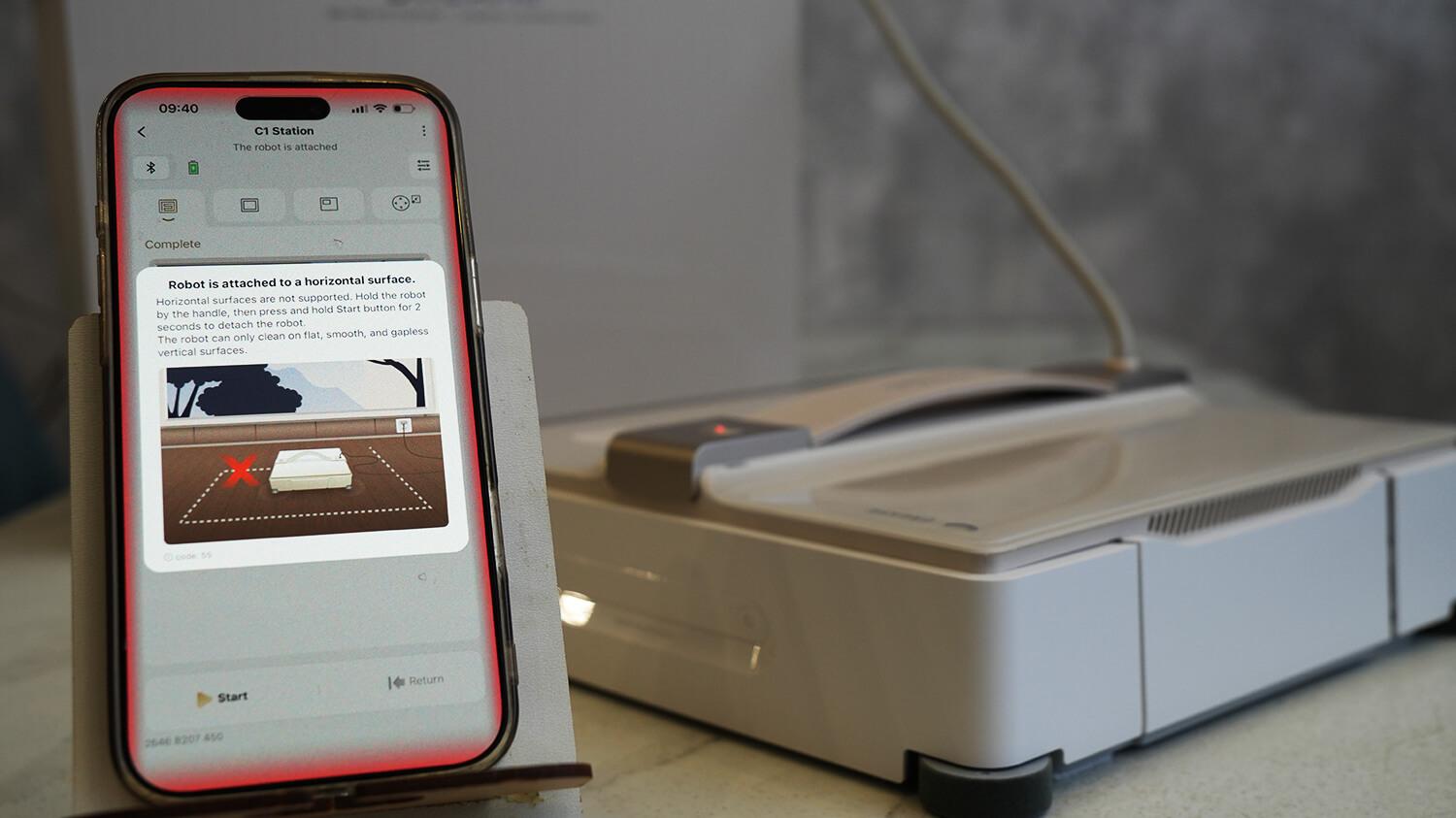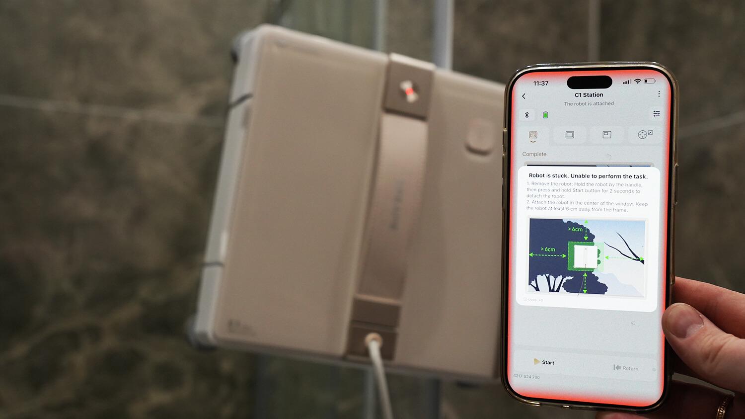 А вот на горизонтальных поверхностях этот робот-мойщик окон не способен нормально функционировать, кому интересно. При запуске в горизонтальном положении сразу всплывает уведомление с ошибкой на экране смартфона.