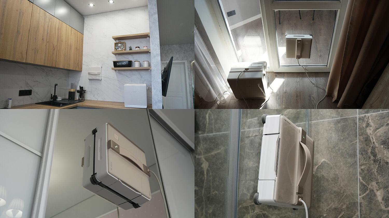 - Главная фишка — автономная работа от кейса с аккумулятором. Робот не привязан к розетке, поэтому спокойно берётся за окна там, где электричество — роскошь: на даче, веранде или снаружи дома. Достал кейс, запустил — и никаких танцев с удлинителями.