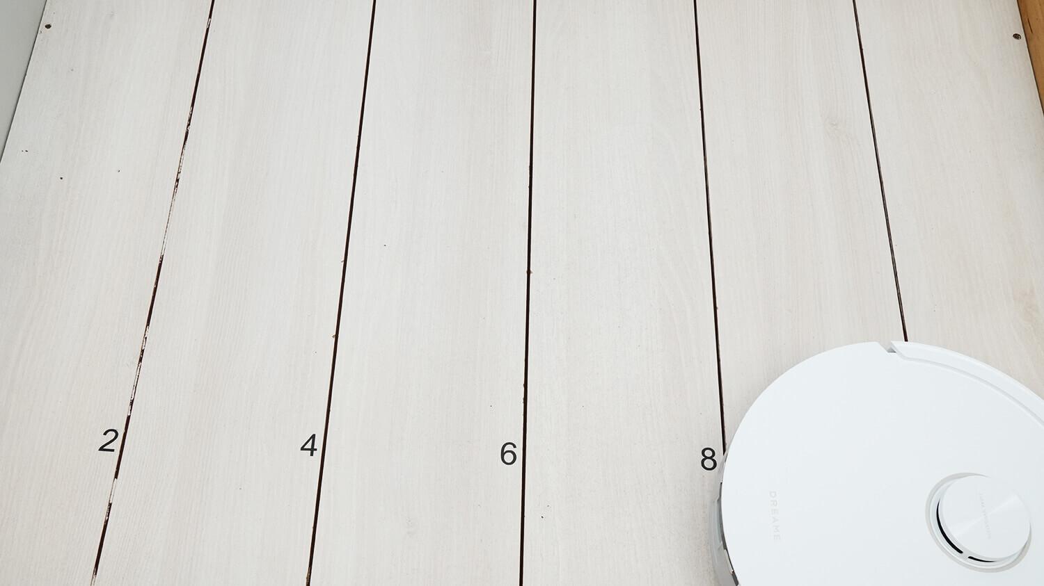 Один из важнейший тестов – проверка реальной силы всасывания. В режиме Тихий робот не смог вычистить мусор из щелей. В режиме «Стандартный» он взял отметку в 2 мм частично. В режиме «Турбо» роботу удалось лучше вычистить 2 мм, частично вычистить 4 мм и даже частично взять 8 мм щель. В режиме «Максимум» робот лучше вычистил щель глубиной в 2 мм, а в режиме «Максимум+» результат не поменялся.