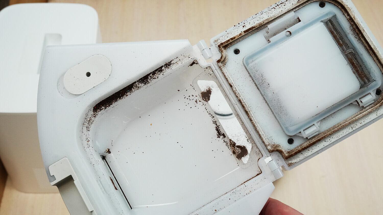 Сразу же после «грязных тестов» проверил, насколько хорошо самоочищается робот-пылесос. Вернул его на станцию и запустил самоочистку. Результат хороший, но не идеально контейнер вычищен.