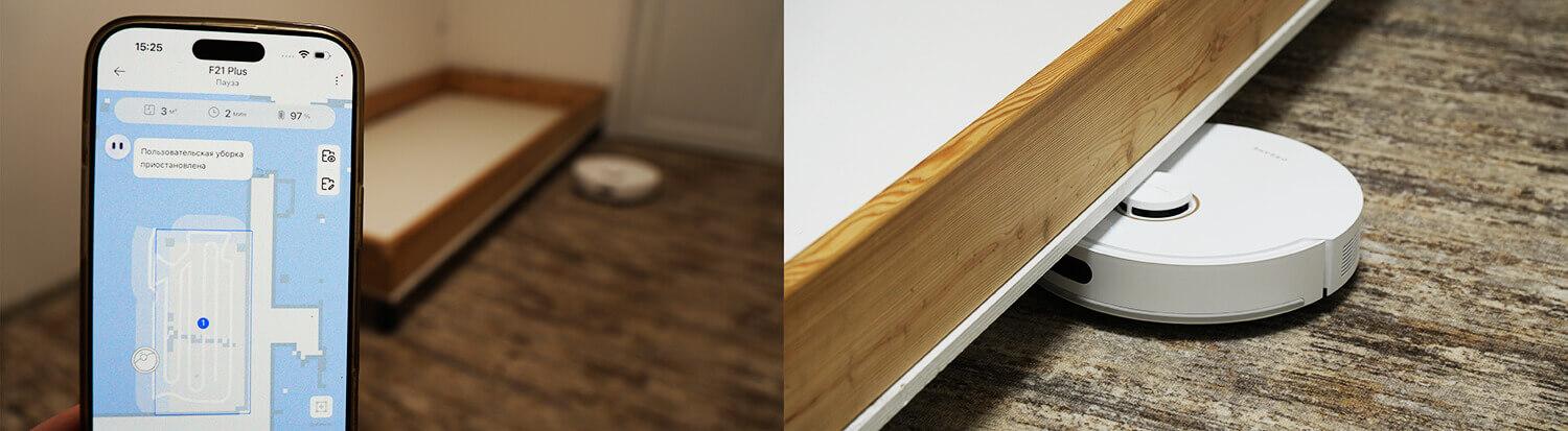 Также проверил, способен ли робот заезжать под стандартный 10 см просвет под мебелью. Да, ему это без проблем удается. Тест пройден успешно.