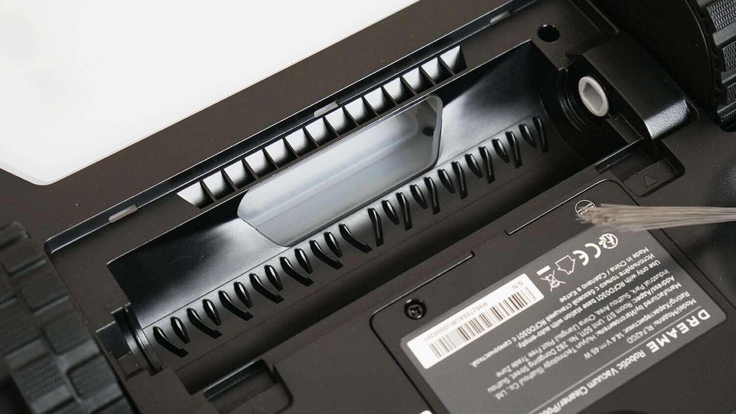 В бытовых условиях после нескольких запусков в квартире с двумя девушками и линяющим корги видим, что на центральную щётку намотались волосы, причем прилично. А вот боковая щётка чистая. В общем, система защиты турбощётки от наматывания волос тут слабо реализована.