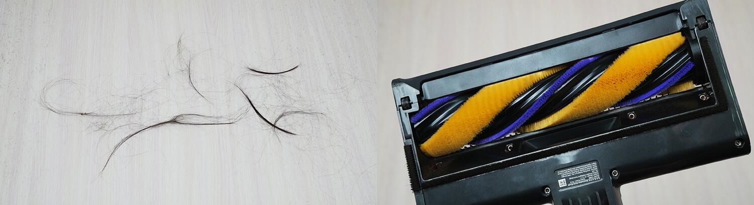 Отдельно проверил, как справляются гребни с распутыванием роллера от волос. Разложил на полу волосы разной длины и собрал их пылесосом. Роллер опять чист, отличная работа системы защиты от наматывания волос!
