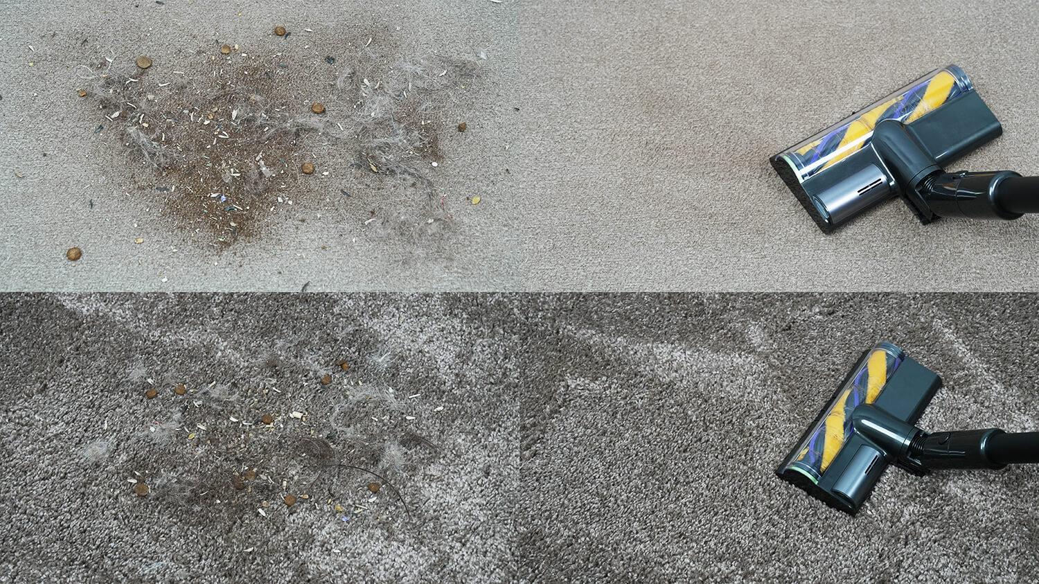 Этот же мусор был рассыпан на ковре с низким ворсом и Dreame R20 Essential буквально вытянул душу из него. Потом также тщательно вычистил ковер со средним ворсом.