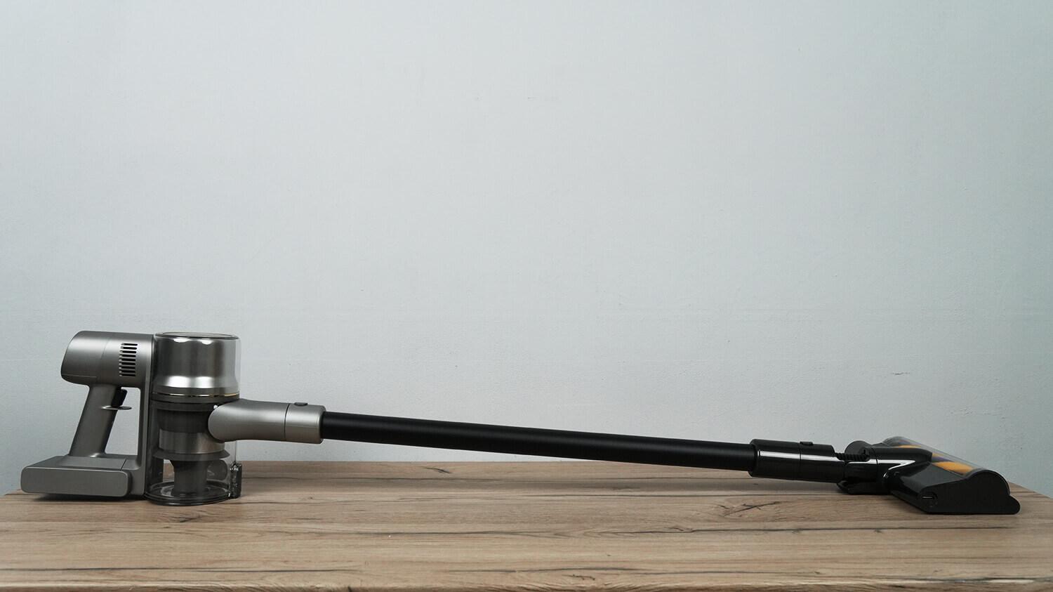 Что касается веса, основной блок весит 1761 грамм, трубка удлинитель 267 грамм, а основная насадка для пола 846 грамм. Итого в полной сборке вес пылесоса 2874 грамма. Он чуть-чуть тяжелее предшественника. В любом случае это вполне стандартный вес, как для вертикального пылесоса. Центр тяжести грамотно смещен к низу, поэтому рука не будет уставать при эксплуатации.