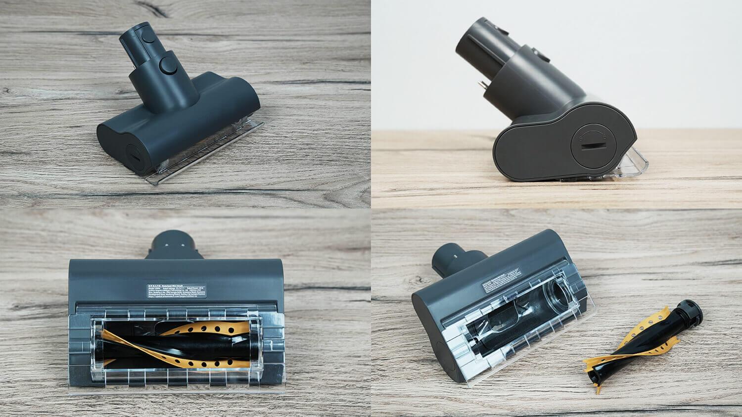 Рассмотрим насадки, идущие в комплекте. Основная насадка для пола идентична той, которой укомплектован флагманский вертикальный пылесос Dreame Z40 Station. Эта насадка оснащена поворотным шарниром, переключателем подъема передней шторки для сбора крупного мусора и подсветкой.