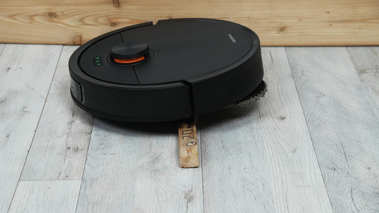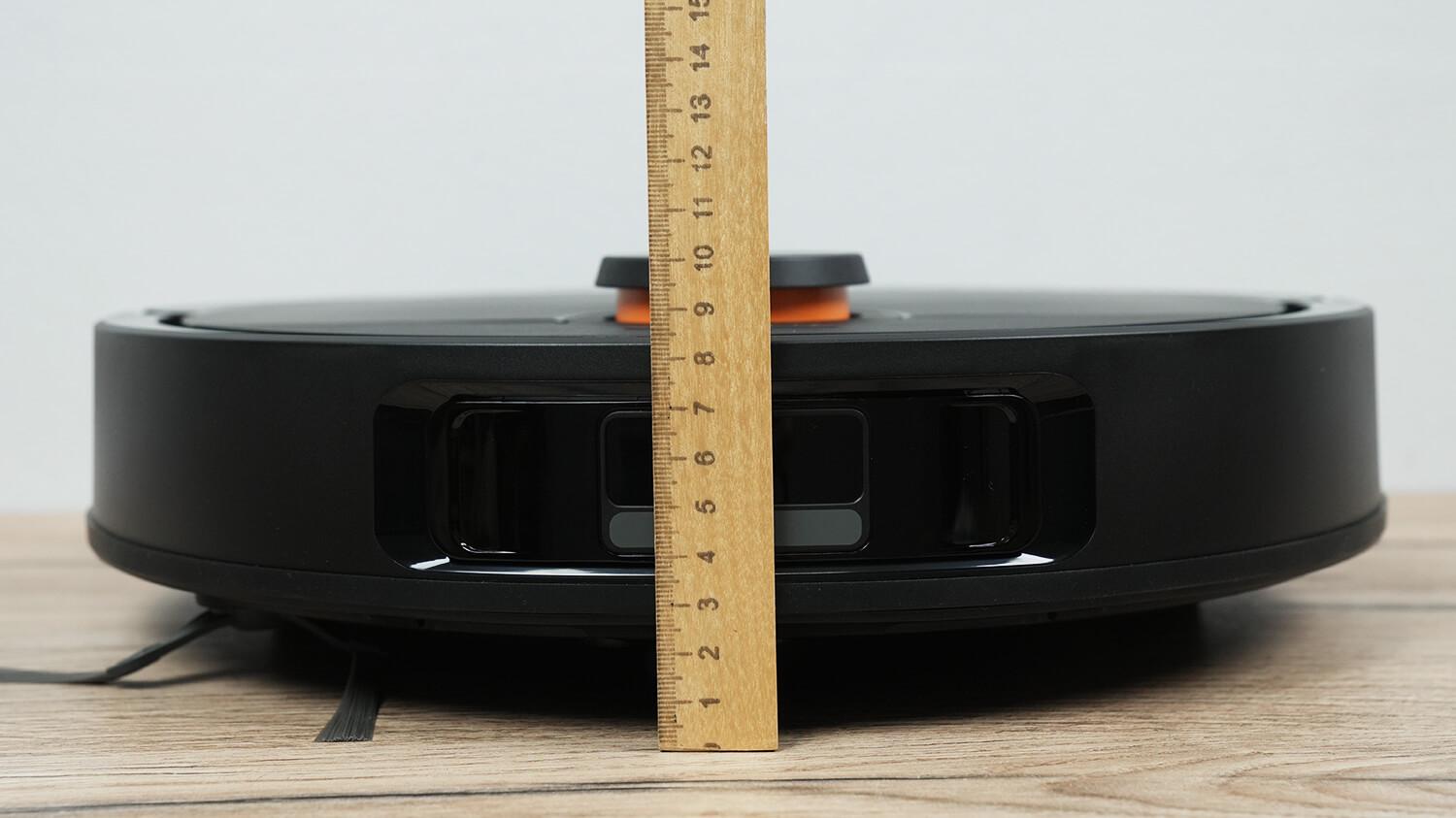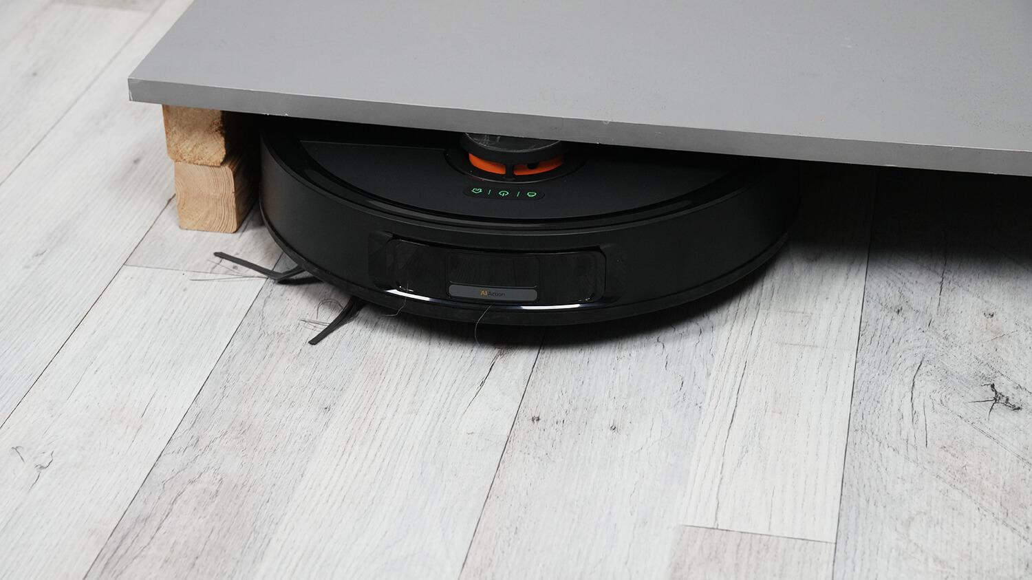 Также проверил, способен ли робот заезжать под стандартный 10 см просвет под мебелью. Да, ему это удается. Но замечу, что он прям с усилием вошёл в просвет, т.к. сам корпус высотой 10 см. Из-за того, что нет подпружиненной крышки на лидаре, она немного притерлась.