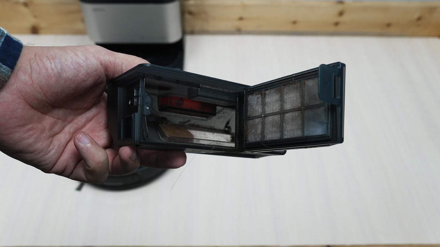 Сразу же после «грязных тестов» проверил, насколько хорошо самоочищается робот-пылесос. Вернул его на станцию и запустил самоочистку. Результат хороший.