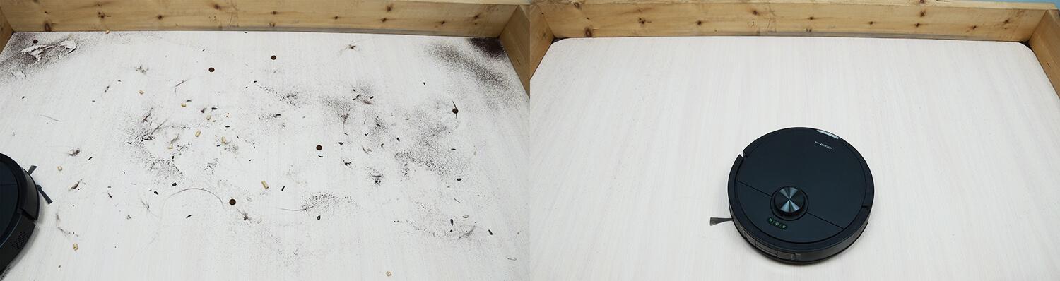 Ковры с низким ворсом робот без проблем вычищает. На коврах со средним ворсом качество уборки ниже – некоторые частицы мусора, такие как корм и скорлупа семечек, остаются в ворсе и робот не способен их собрать. Тут наверняка дело в том, что и блок центральной щётки не плавающий и реальная мощность не очень высокая.