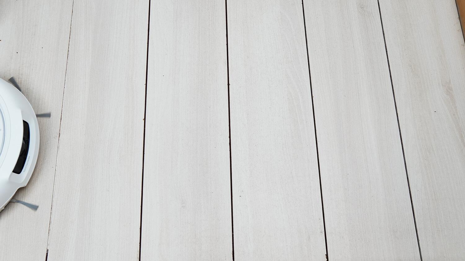 Качество оттирания загрязнений также на высоком уровне. Салфетка хорошо прижимается к полу и впитывает в себя грязь. При этом робот тщательнее проходит края убираемой зоны благодаря выезду одной из салфеток к плинтусу.