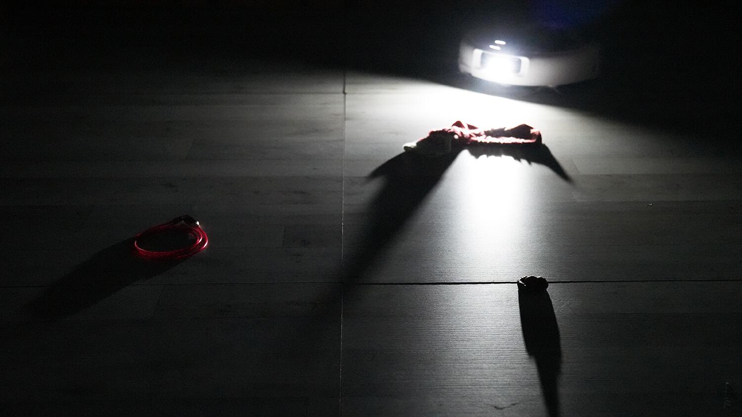 В полной темноте DJI ROMO P смог также определить и аккуратно объехать 6 из 6 бытовых предметов, 3 носка, 4 провода и, к большому сожалению, зацепил и зажевал одну из 6 имитаций, причем остальные 5 аккуратно объехал. Практически идеальный результат! Браво, инженеры DJI!