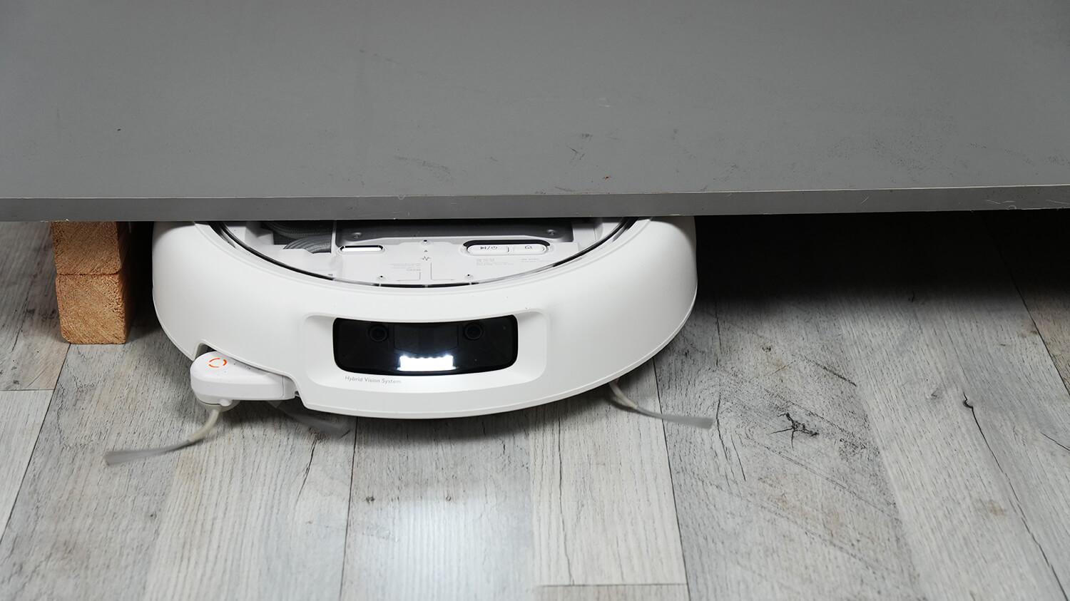 Отдельно была проверена минимальная высота, под которой робот способен проезжать. Так вот в стандартный 10 см просвет робот без проблем заезжает и убирает в нём со включенной подсветкой.