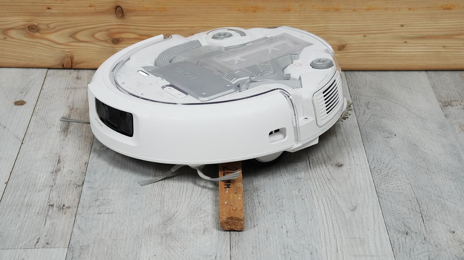 Что касается мощности всасывания, в режиме «Тихий» робот-пылесос смог частично вычистить щель глубиной в 2 мм, в режиме «Стандартный» он вычистил 2 мм заметно лучше. В «Турбо» режиме щель глубиной 2 мм была вычищена полностью, а в режиме «Глубокий» роботу всё же удалось частично в двух местах вычистить щель глубиной в 8 мм.