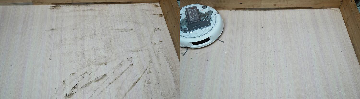 Теперь это лучший результат не проекте! Вероятно дело в давлении салфеток на пол и самой толщине салфеток, но факт остается фактом — DJI ROMO P великолепно справился с заданием.