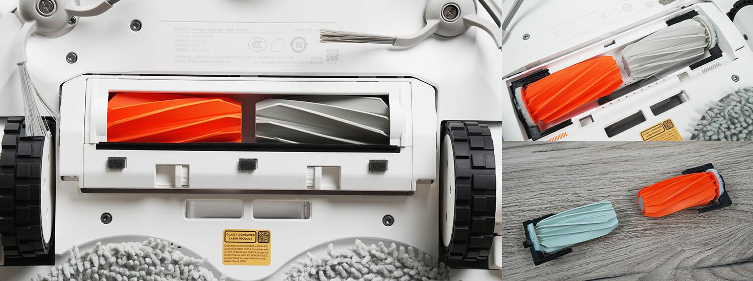 «С коробки» установлены силиконовые щётки, которые дополнительно разбираются для обслуживания. Вместо них можно установить щетинисто-лепестковые, которые должны лучше справляться со сбором мусора, в т.ч. и на коврах.