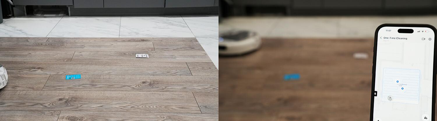 Говоря о навигации в пределах дома, робот-пылесос убирает комнату за комнатой змейкой, потом по периметру. Время от времени он заезжал на базу для стирки салфеток, после чего продолжал убирать с того места, где закончил. Неубранных зон не осталось, тест пройден!
