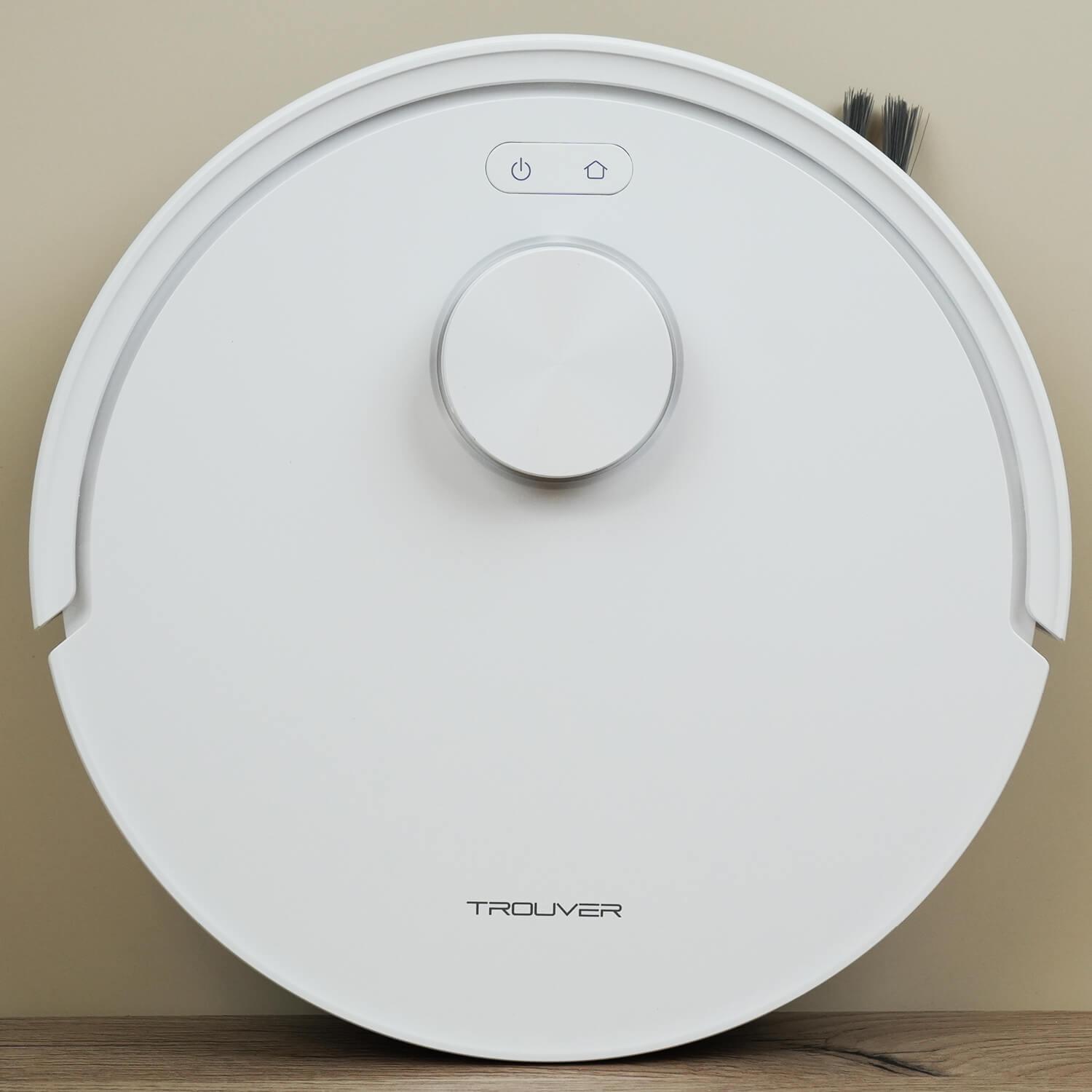 Рассмотрим, как устроен TROUVER E20s Pro Plus. Робот-пылесос выпускается в белом цвете, форма корпуса круглая. Высота 96 мм от пола.