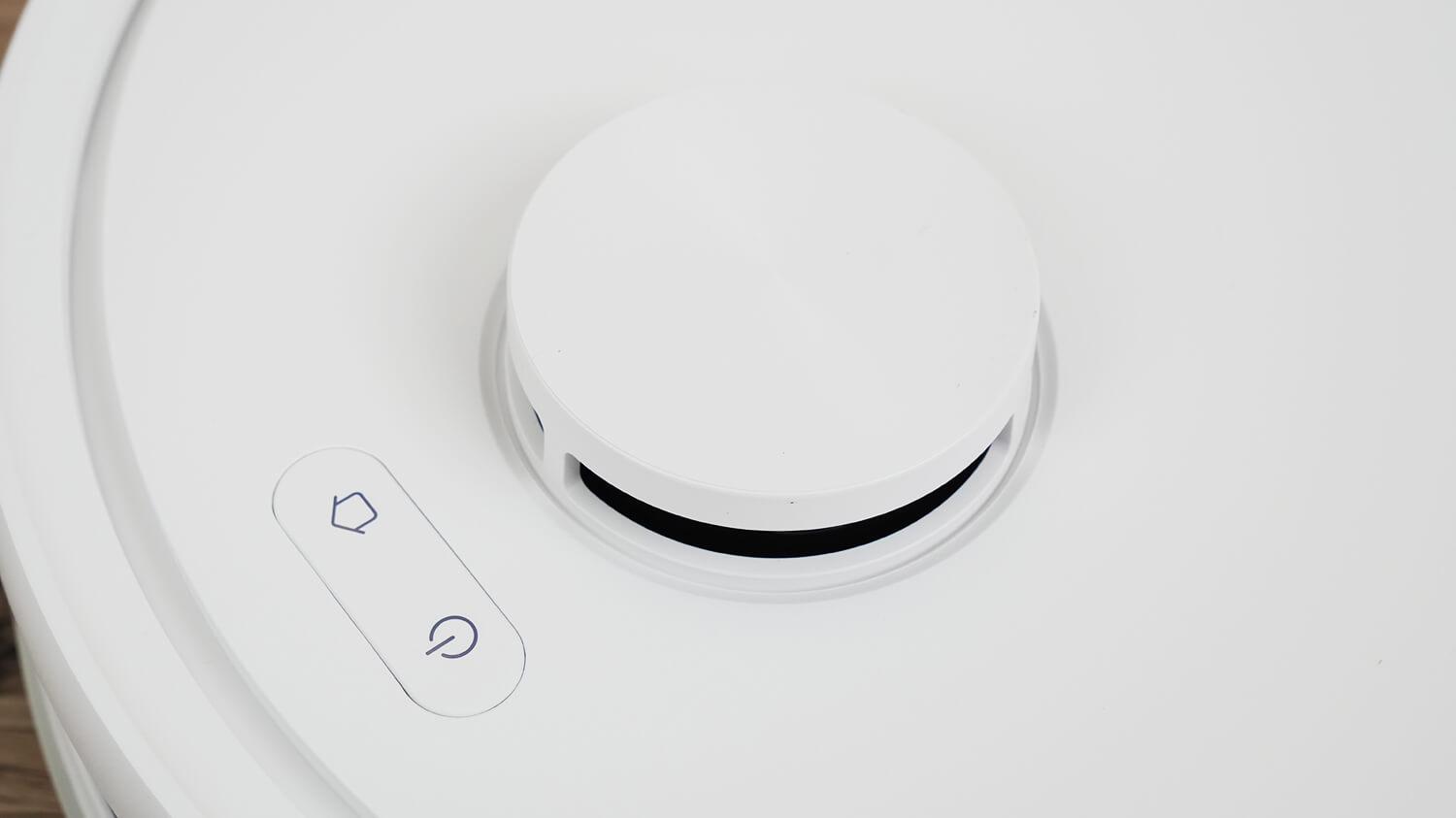 За навигацию отвечает лидар. Его крышка неподвижная. Рядом находятся две механические кнопки управления роботом.