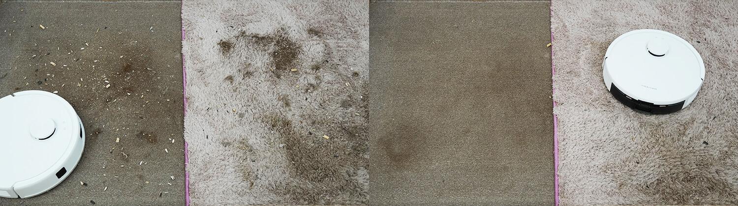 Ковры с низким ворсом робот способен вычищать. На коврах со средним ворсом качество уборки ниже – некоторые частицы мусора, такие как корм и скорлупа семечек, остаются в ворсе и робот не способен их собрать. Тут наверняка дело в том, что и блок центральной щётки не плавающий.