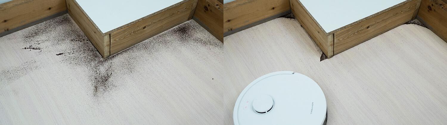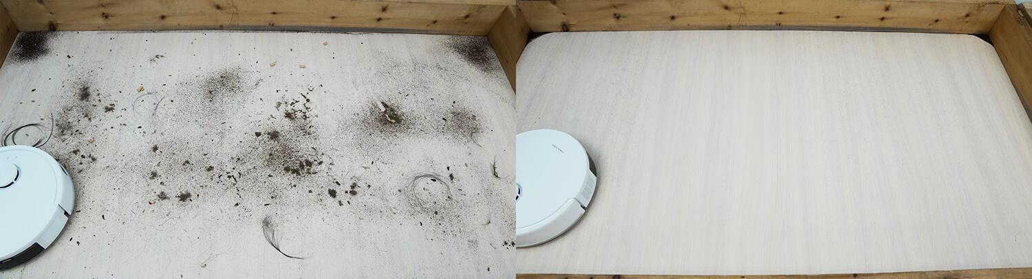 Что касается сбора мусора на ламинате, так вот крупный мусор блокирует турбощётку и робот уходит в ошибку. А вот мелкий бытовой мусор, в т.ч. шерсть и волосы робот способен собирать.