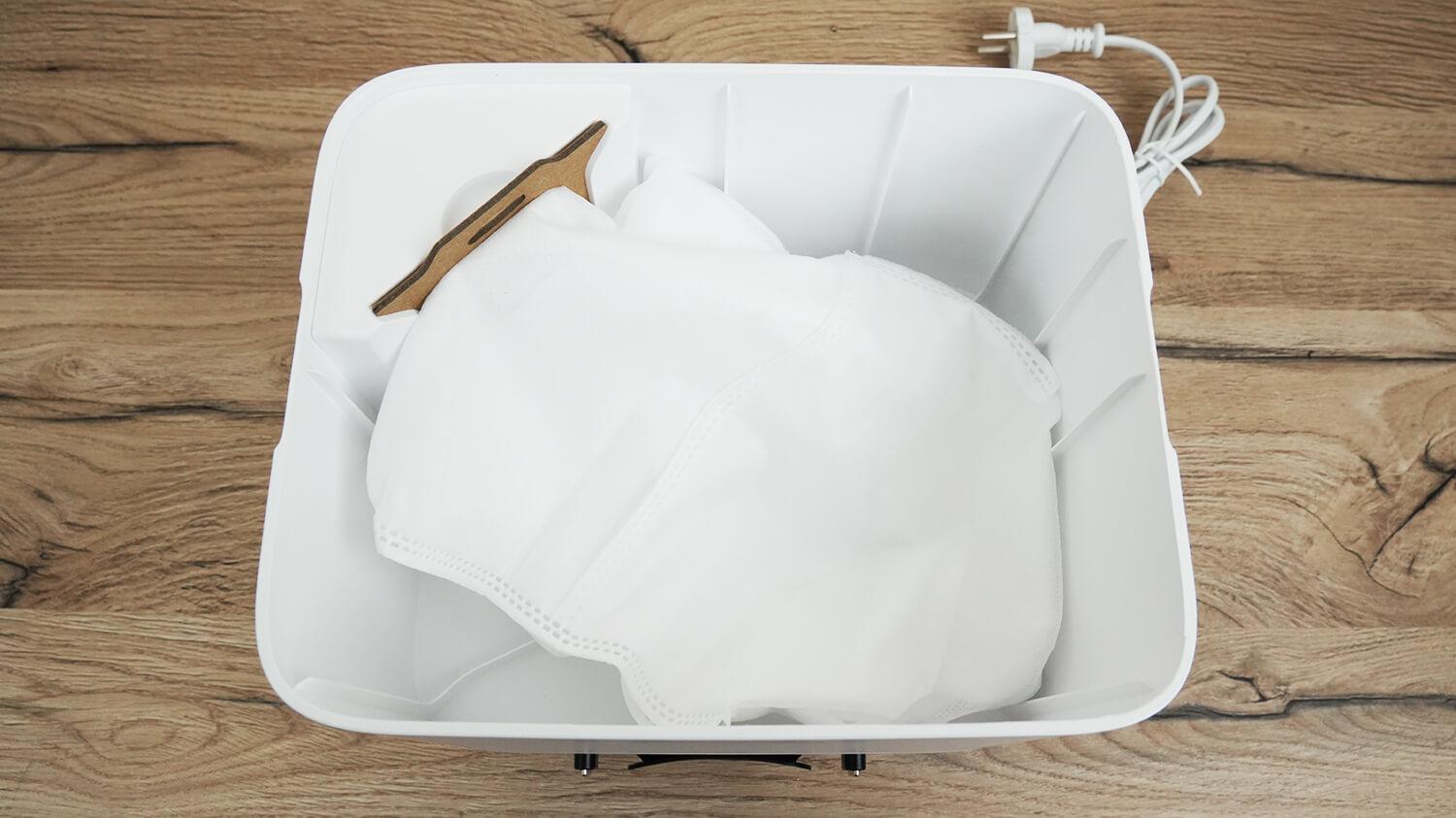 Снизу на баке закреплен держатель с салфеткой для влажной уборки. Вода подается через 3 отверстия с дозаторами. Салфетка закреплена за счет липучек и паза. Тут всё реализовано привычным образом.