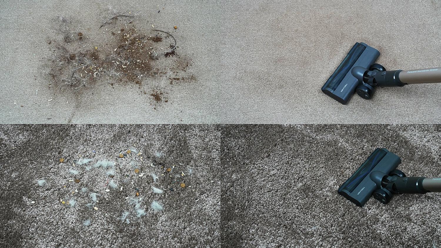 Говоря о качестве сбора мусора на ковровых покрытиях, пылесос отлично чистит ковры как с низким, так и со средним ворсом. Это тест пройден!