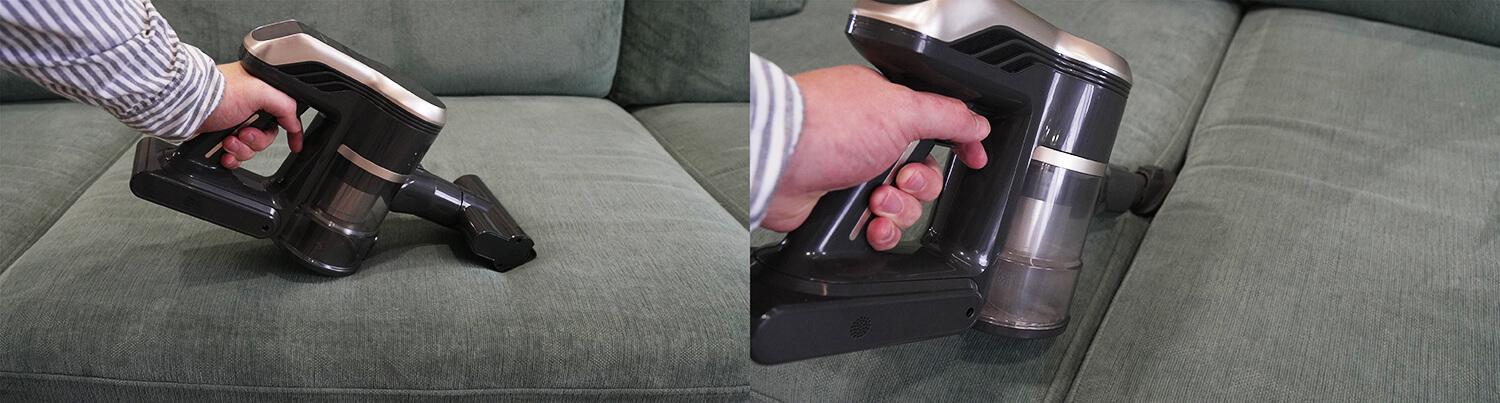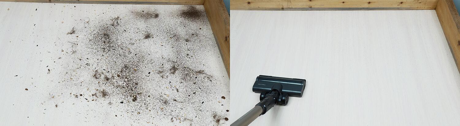 Что касается мощности всасывания, на минимальной мощности Trouver J40 с легкостью вычистил щели глубиной до 10 и даже от 12 до 14 мм. Щели глубиной от 16 до 20 мм он вычистил частично. На средней мощности ему удалось хорошо пройти щели в 20 и 25 мм. Ну и на максимальной он хорошо вычистил 35 мм щель. Так что в реальности мощность повышенная у этого пылесоса.