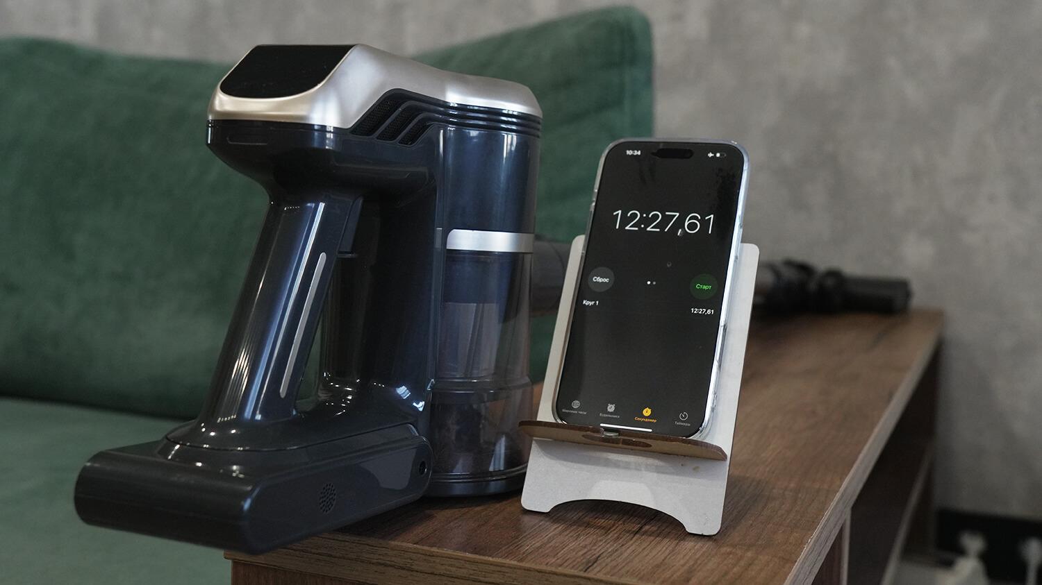 Ну и, наконец-то, перейдем к тестам. Первым делом проверим время автономной работы Trouver J40 на максимальной мощности при установленной основной насадке для пола. Так вот ему удалось проработать 12 минут 27 секунд и это стандартный результат.