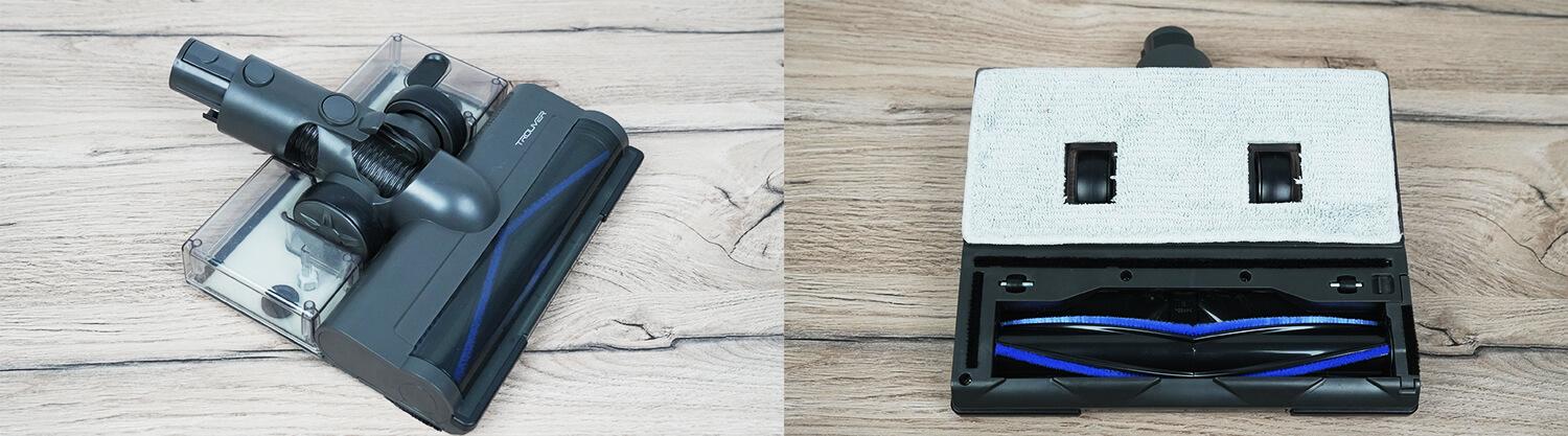 Также покажу, как с помощью этого пылесоса и насадки для влажной уборки можно протирать пол. Закрепляете резервуар к основной насадке и используете Trouver J40 как швабру. В это время можно и пылесосить сразу, но лучше не злоупотреблять одновременным включением всасывания, чтобы вода не попала в пылесборник и не испортила пылесос.