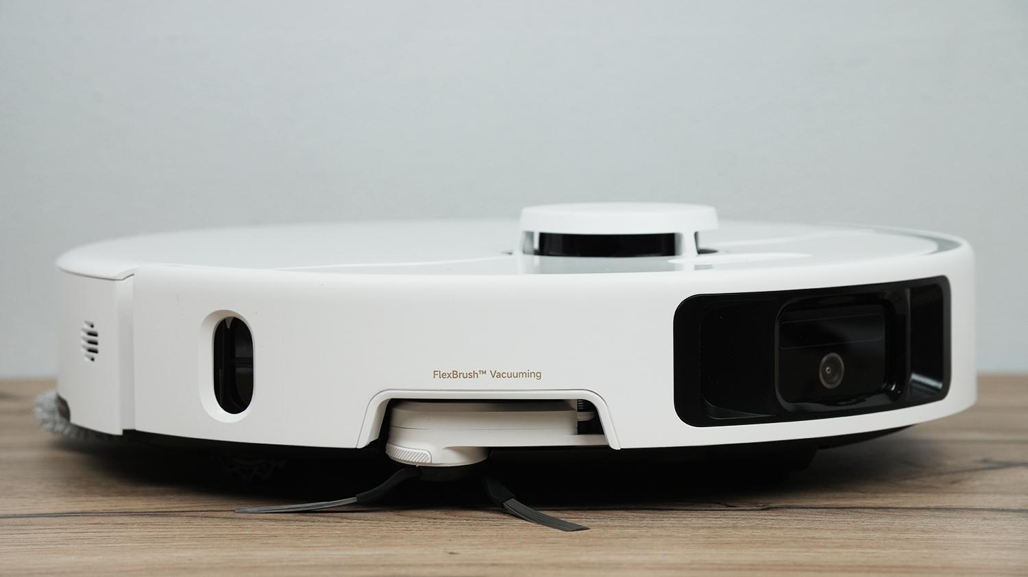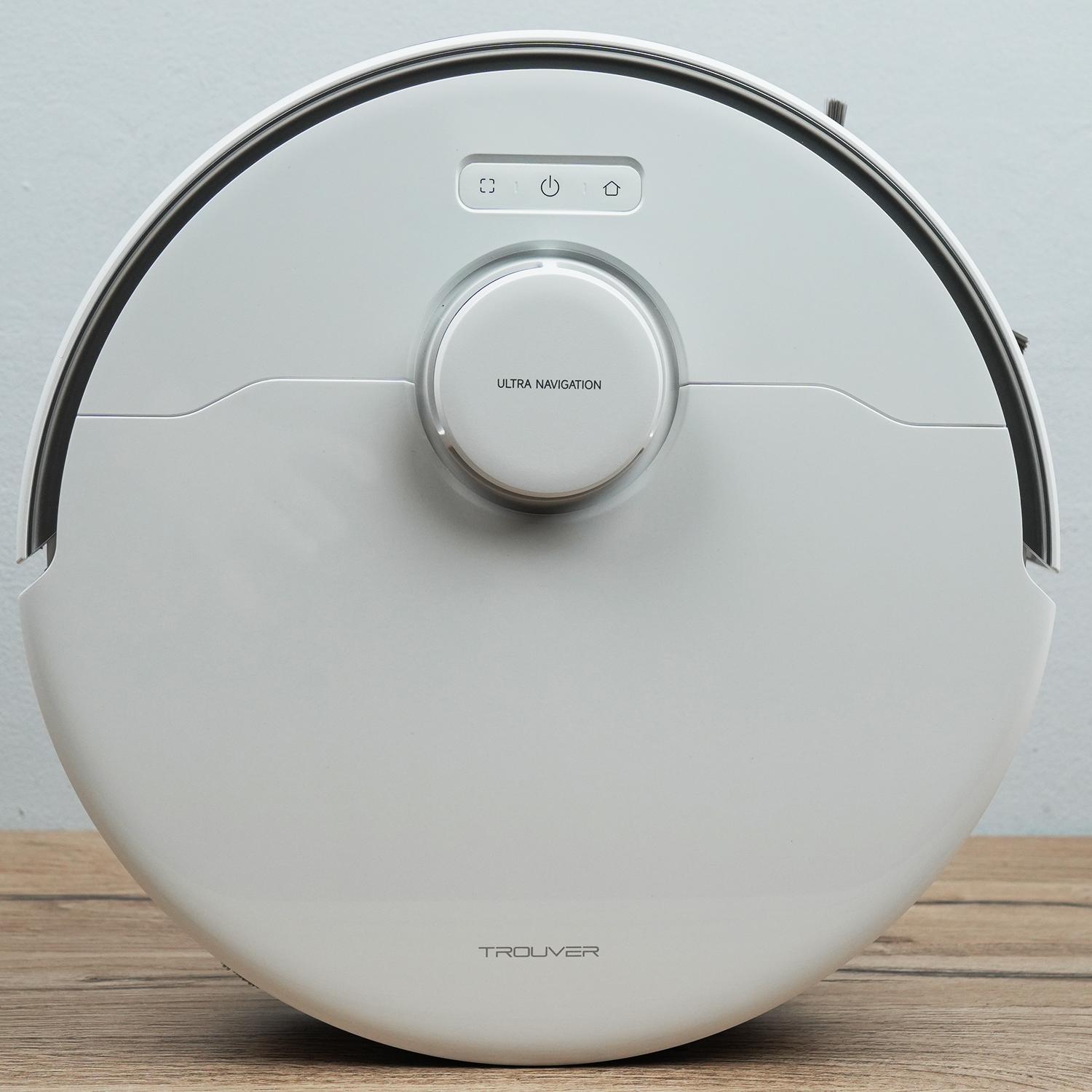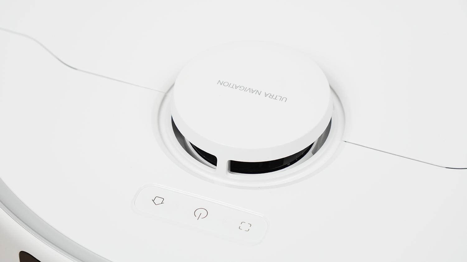 Сверху на корпусе установлен лидар, который оснащен подпружиненной крышкой для защиты от застревания под мебелью. Микрофонов для управления роботом через фирменный ассистент «Hey, Trouver» нет, опять же, сравнивая со старшей моделью. Рядом с лидаром видим три механические кнопки управления.