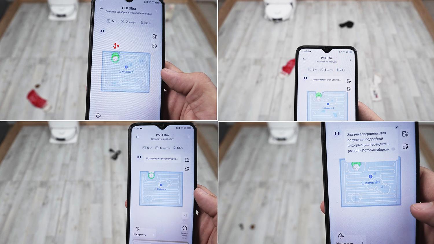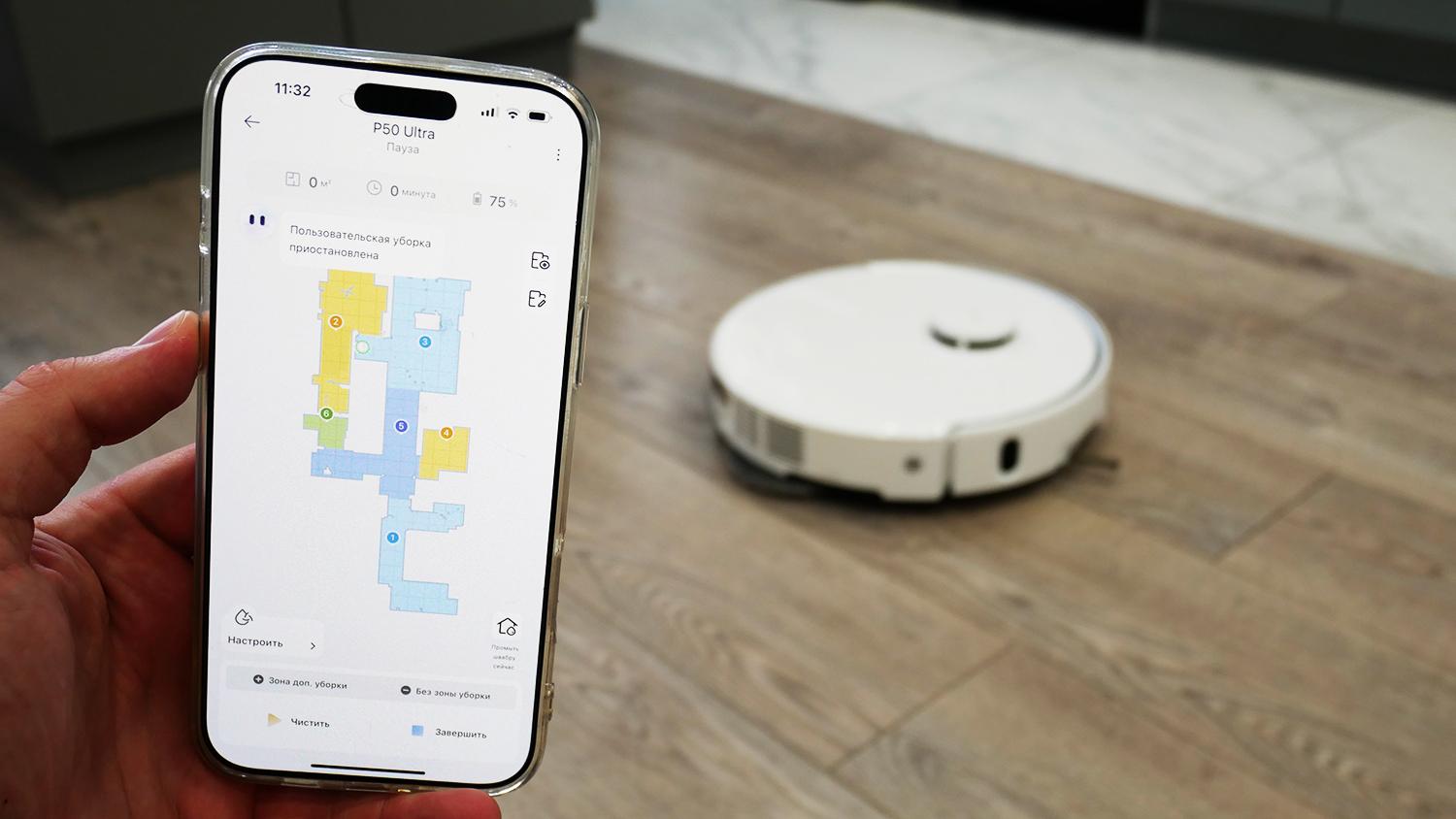 В целом, внедрили большое количество возможностей для гибкой настройки параметров уборки. Сравнивая со старшей версией P50 Pro Ultra, отсутствует режим динамической уборки зон с препятствиями, нет подъема центральной щётки, снятия салфеток на станции, функции распознавания предметов, а также распознавания пятен и крупного мусора. Ну и удаленного слежения за домом нет, о чем уже говорилось.