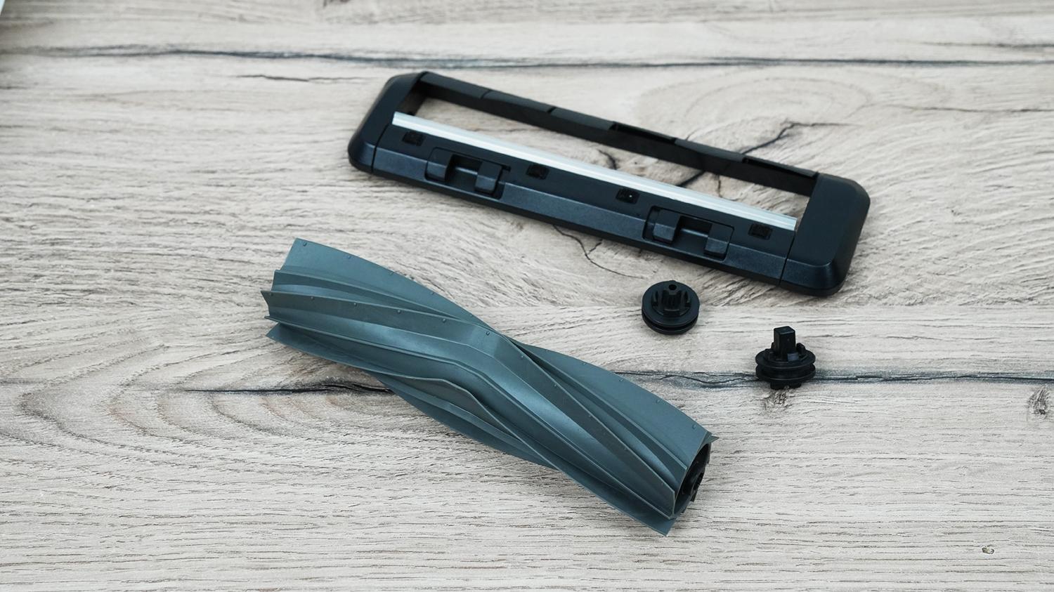 Блок центральной щётки плавающий. Однако турбощётка не поднимается в режиме мойки пола, как у P50 Pro Ultra. Сама турбощётка силиконовая, с двух сторон разбирается для очистки от намотанных волос и шерсти. Щётку с ножами, как у старшей модели, можно установить в этот робот, докупив её отдельно.