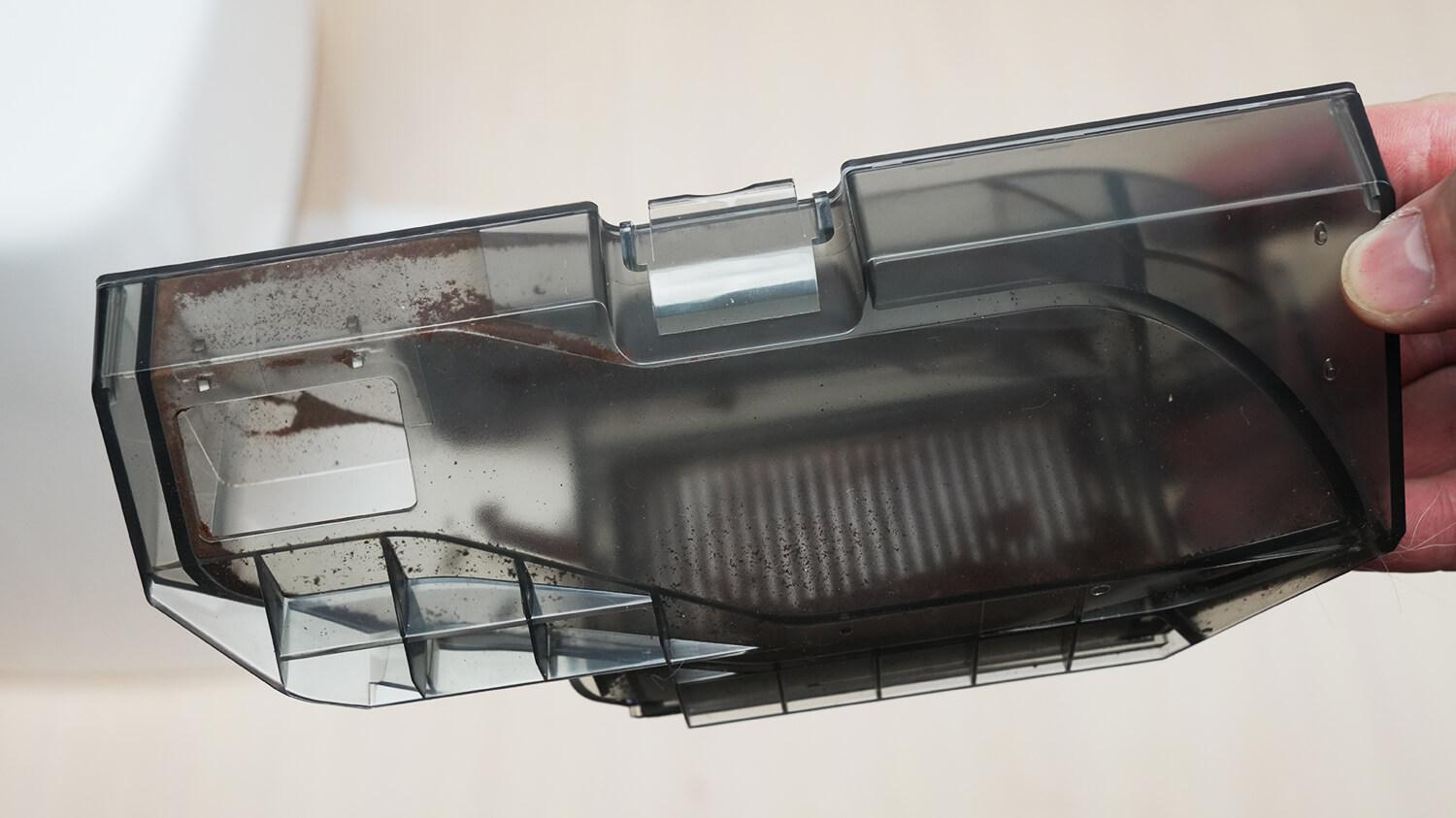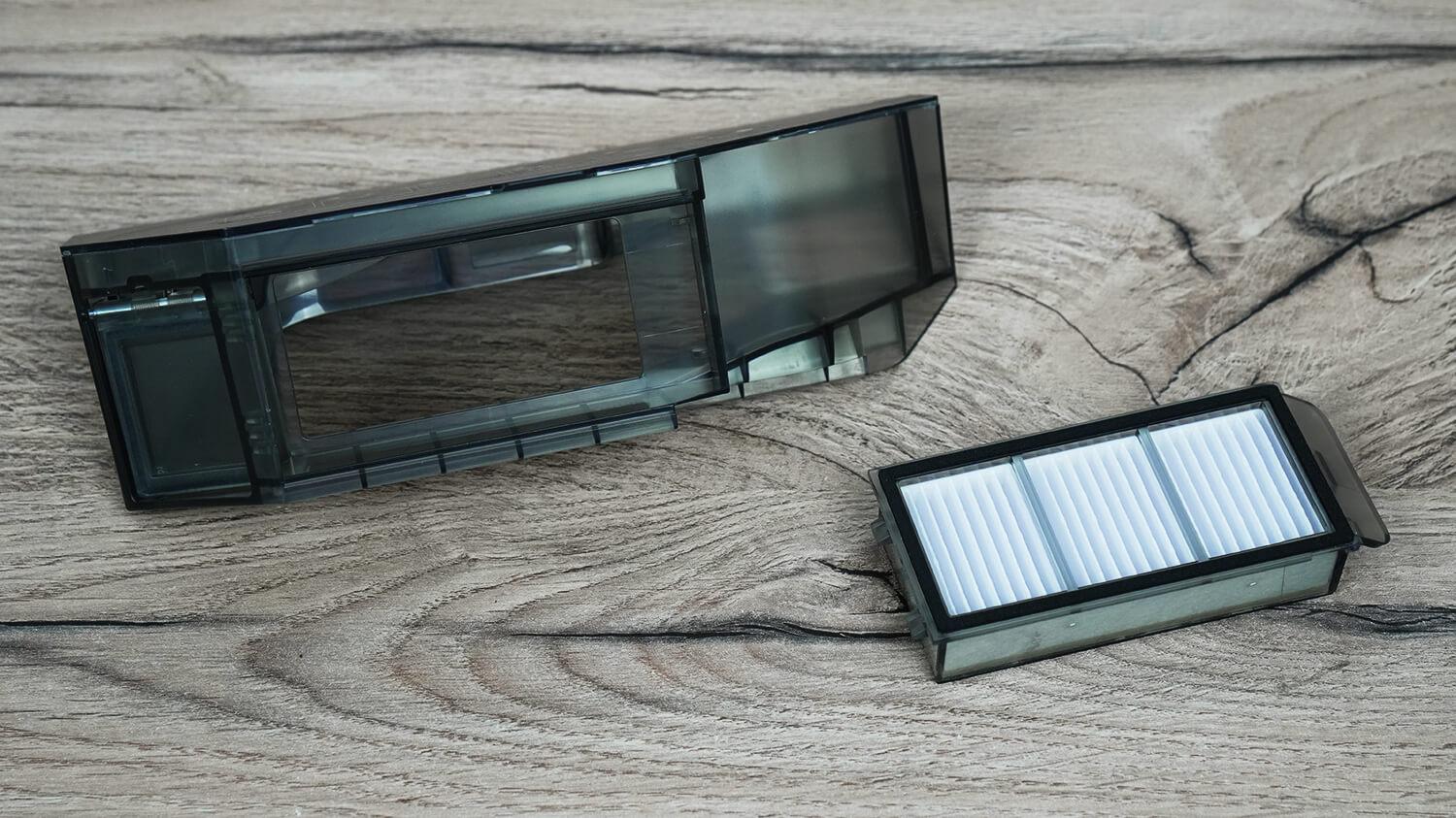 Сразу же после «грязных тестов» проверил, насколько хорошо самоочищается робот-пылесос. Вернул его на станцию и запустил самоочистку. Результат хороший, но не идеально контейнер вычищен. К тому же видим, как забит HEPA-фильтр. Ему бы явно не помешала предварительная защита в виде сетки.
