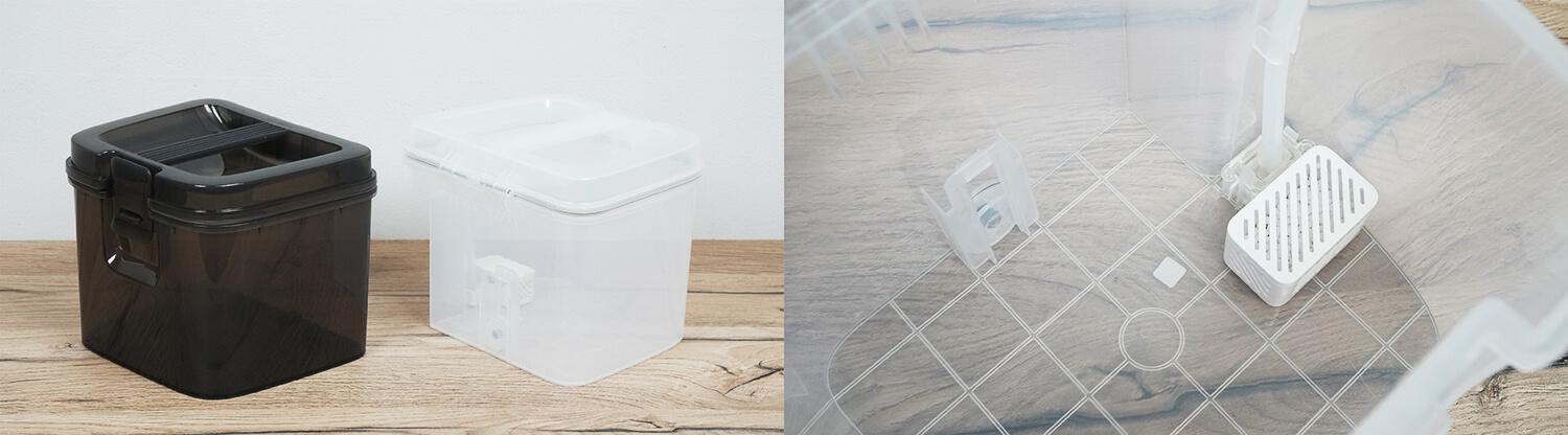 Бак для воды размещены традиционно под верхней крышкой. Бак для грязной воды объемом 3,5 литра, а для чистой 4 литра. В последнем установлен ингибитор накипи.
