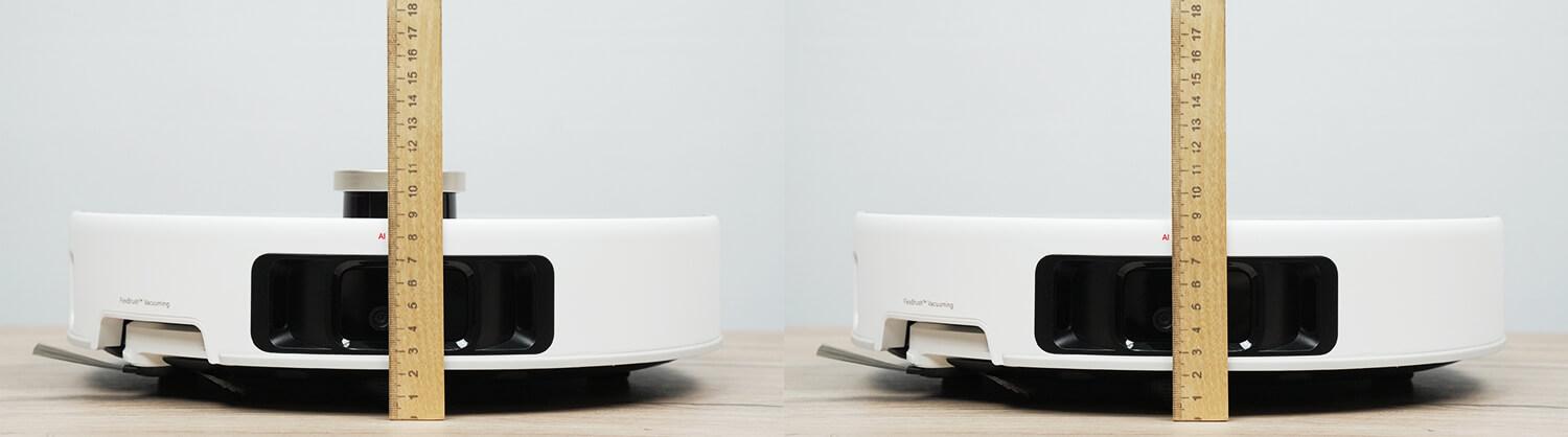 Главная фишка тут — встраиваемый лидар. В поднятом положении высота пылесоса составляет 110,5 мм, а если лидар прячется внутрь корпуса — всего 89,5 мм. Это значит, что робот спокойно пройдет под мебель с просветом до 9 см. Сама технология получила говорящее название FlexiRise или же «гибкий подъем», который даёт и точную навигацию, и проходимость там, где раньше лидарам было «нельзя».