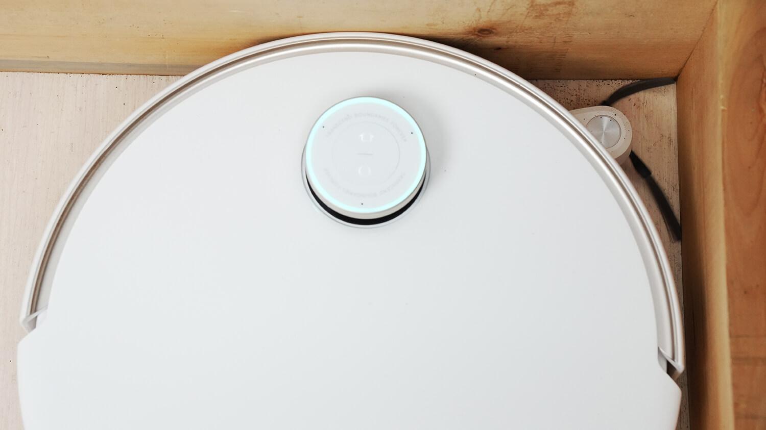 Лидар тут без подпружиненной крышки. На нем размещены микрофоны для голосового управления роботом через фирменный ассистент «Hey, Trouver», а также две механические кнопки управления.