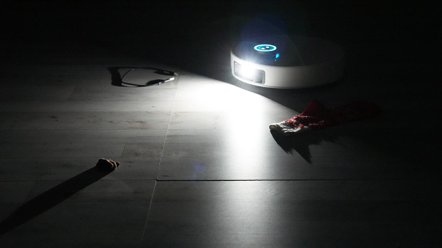 В полной темноте система распознавания предметов также способна функционировать благодаря подсветке, но всё же камера слепнет. Так вот робот смог объехать только 2 из 6 бытовых предметов – это игрушку и обувь, причем не распознал их. Остальные предметы просто переехал. Из 4 проводов на удивление аккуратно объехал все 4, но распознал 3. Из 3 носков все 3 распознал и объехал. Что касается имитации сюрпризов домашних животных, 5 из 6 ловушек робот распознал и объехал, одну переехал.