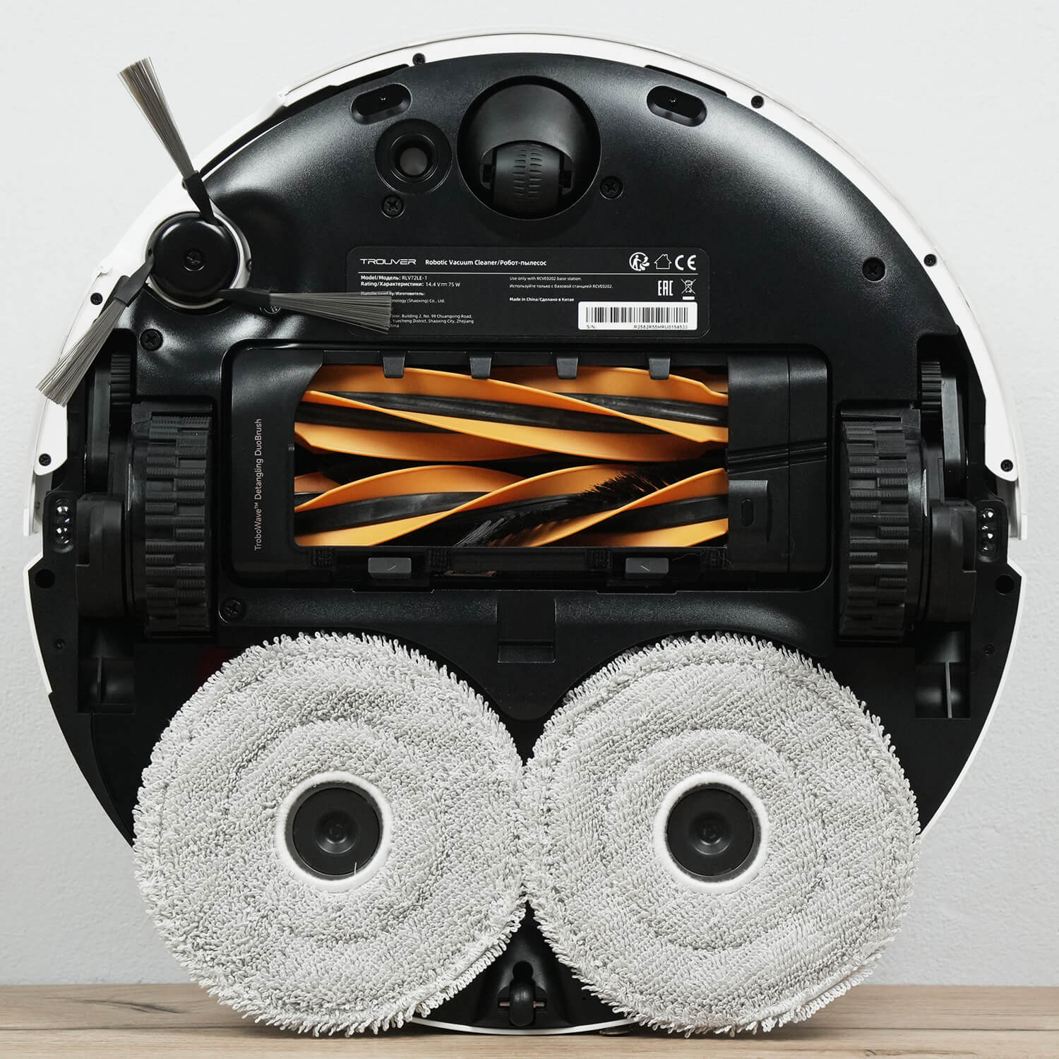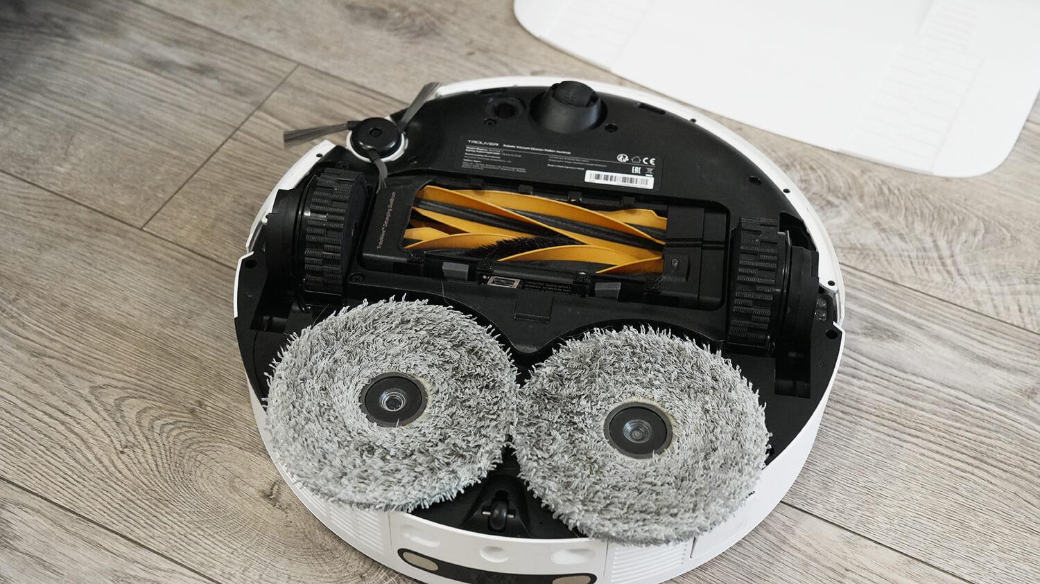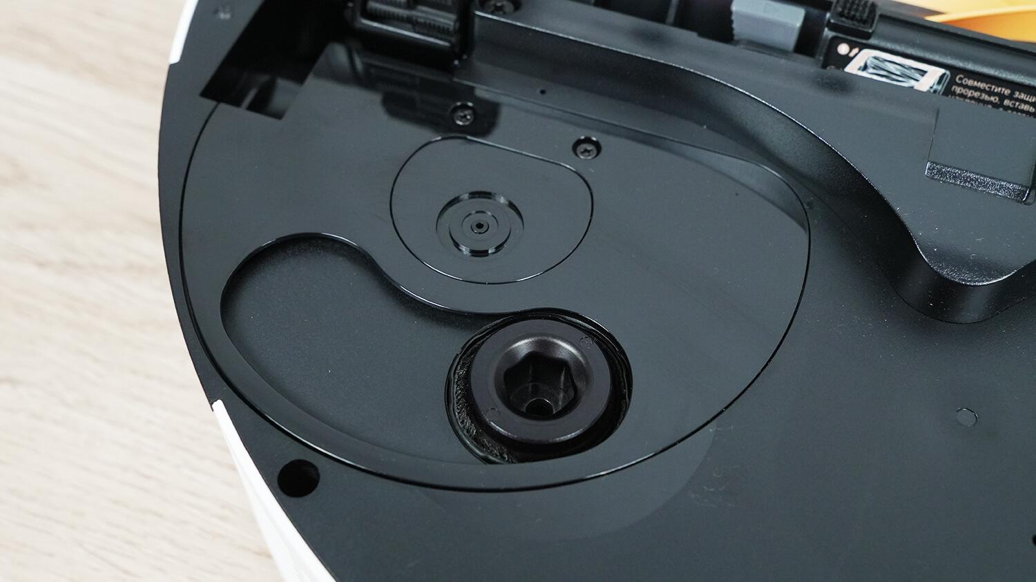 Что касается влажной уборки, робот моет пол двумя круглыми вращающимися салфетками. Они привычного исполнения, удерживаются на липучках.
