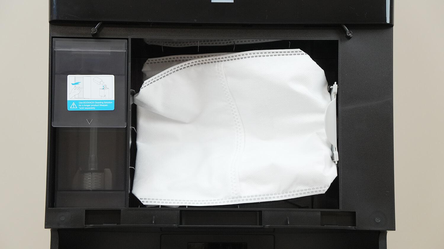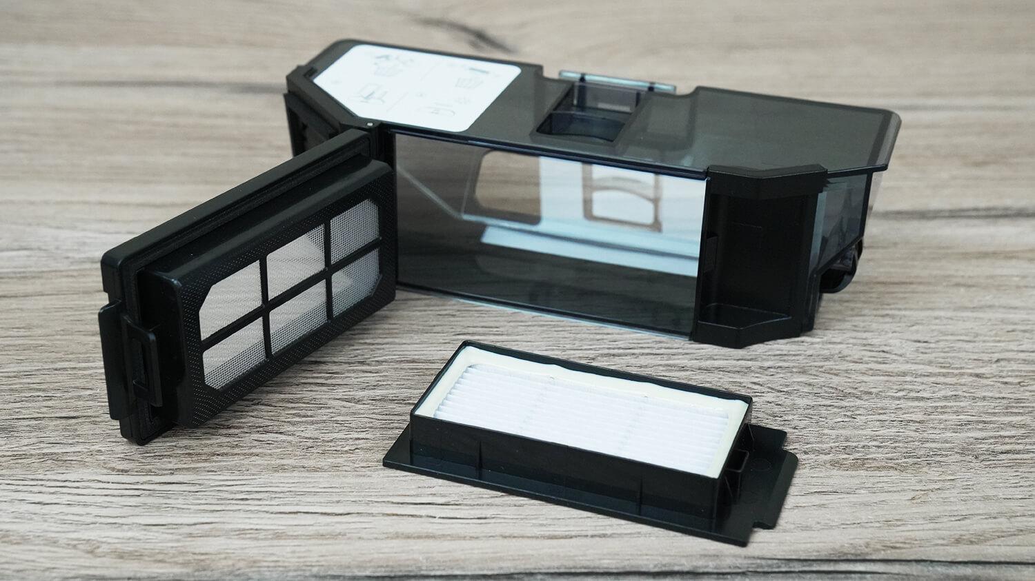 Система фильтрации в пылесборнике на базе HEPA-фильтра и сетки. Объем контейнера 260 мл. Внутри робота установлен бак для воды на 55 мл. Он скрыт в корпусе. Вода закачивается автоматически на станции.