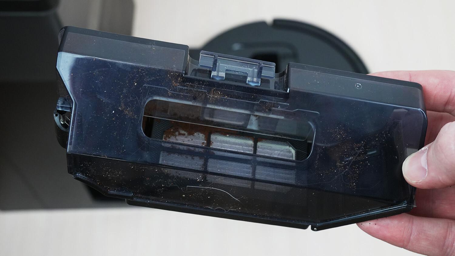 Сразу же после «грязных тестов» проверил, насколько хорошо самоочищается робот-пылесос. Вернул его на станцию и запустил самоочистку. Результат хороший.