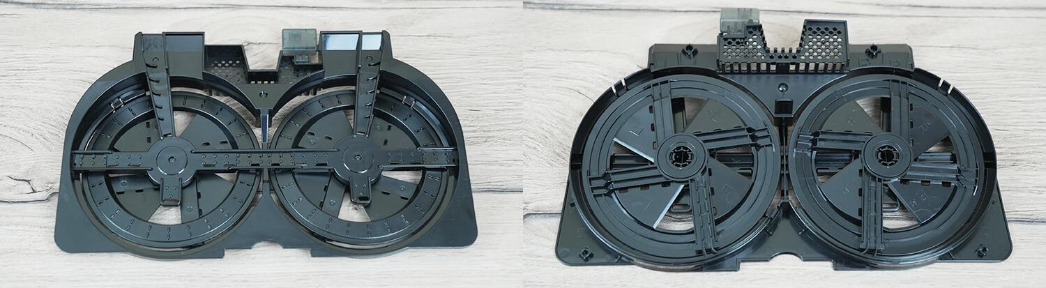 Салфетки круглые, удерживаются на липучках, достаточно плотные. За одним из держателей видим механизм, благодаря которому салфетка выезжает к краю корпуса.