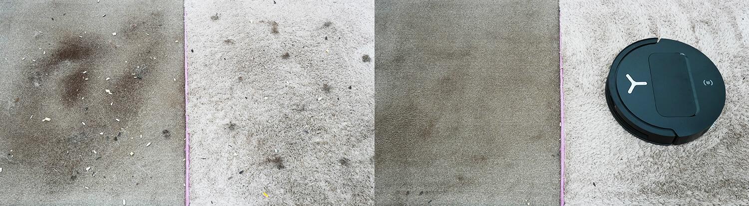 Что касается уборки на ковровых покрытиях – ковры с низким ворсом робот тщательно вычищает. К качеству очистки ковров со средним ворсом у меня также нет претензий. В общем, щётки хорошо вычищают ковры.