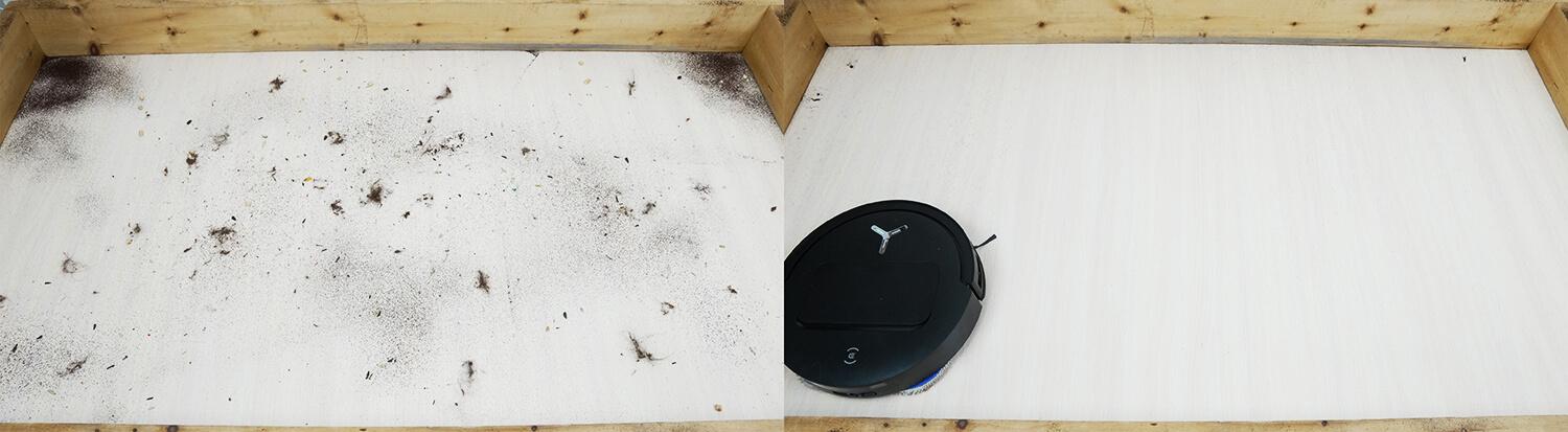 Тест мощности один из самых интересных на проекте. Так вот в режиме «Тихий» роботу удалось хорошо вычистить щель глубиной 2 мм и частично вычистить 4 мм. В режиме «Стандарт» изменений не произошло. В режиме «Средняя» робот смог лучше вычистить 4 мм, а в режиме «Максимум» он частично вычистил щель глубиной 6 мм.