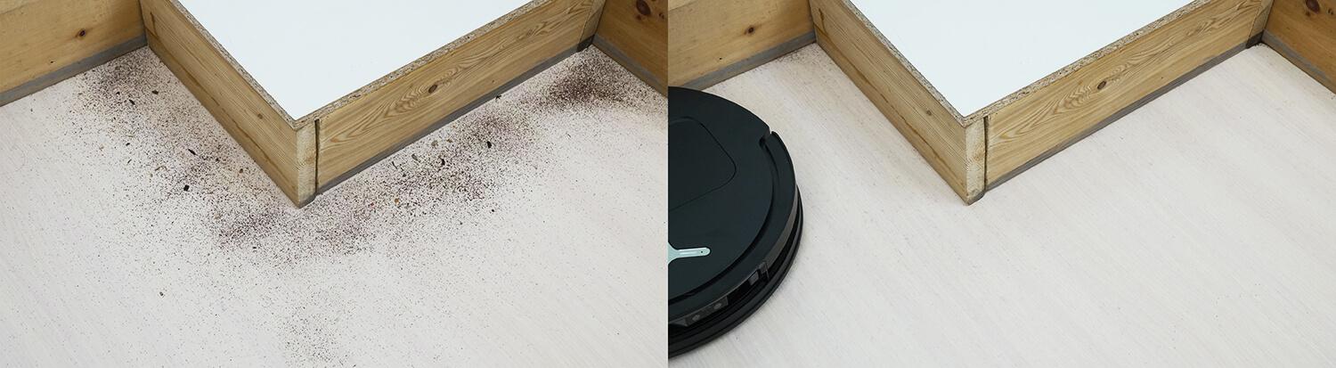 Важно заметить – что этот робот-пылесос хорошо прочистил внутренние углы, не оставив в них мусора. Всё благодаря выдвижной боковой щётке. Внешние углы он также хорошо обметает и это плюс!