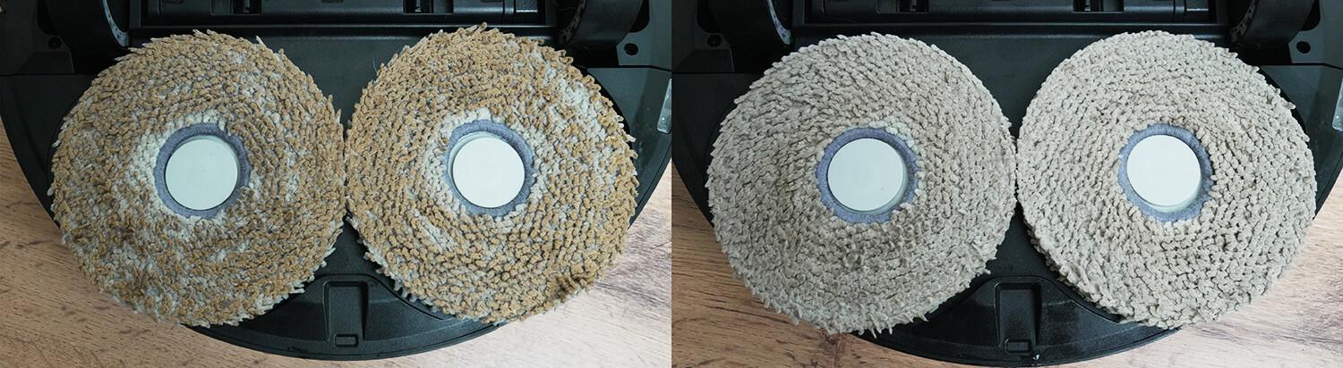 Добавлю, что салфетки автоматически поднимаются при заезде на ковры, при возвращении робота на станцию, а также когда робот направляется в заданную комнату или зону уборки. Высота подъема салфеток составляет 9 мм.