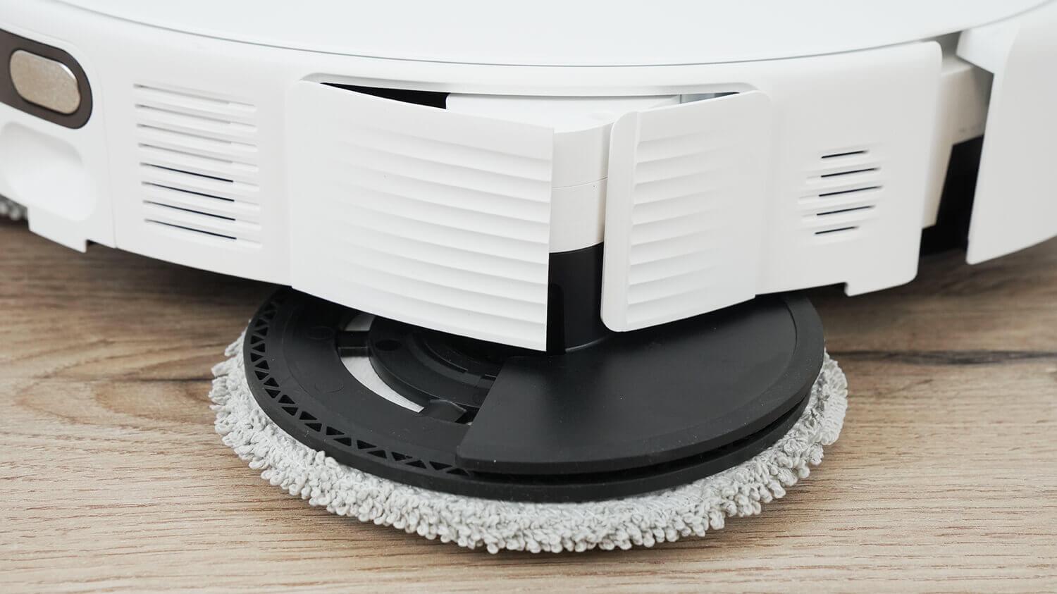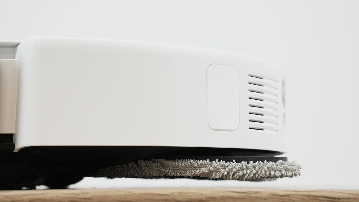 Теперь лапа полностью выезжает из корпуса через боковую. По заявлению производителей, данное решение увеличило глубину выезда салфетки на 68% и повысило эффективность мойки пола у края на 83%. Таким образом робот стал лучше промывать углы, глубже мыть в просветах под мебелью и плотнее промывать зоны вокруг мебели, а также других предметов. В тестах проверим эффективность данного решения.